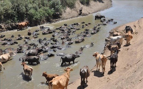 Navenda Nûçeyan - Li Mûşê hin gavan ji ber hewaya germ dewaran dixin Çemê Karasuyê û honik dikin.