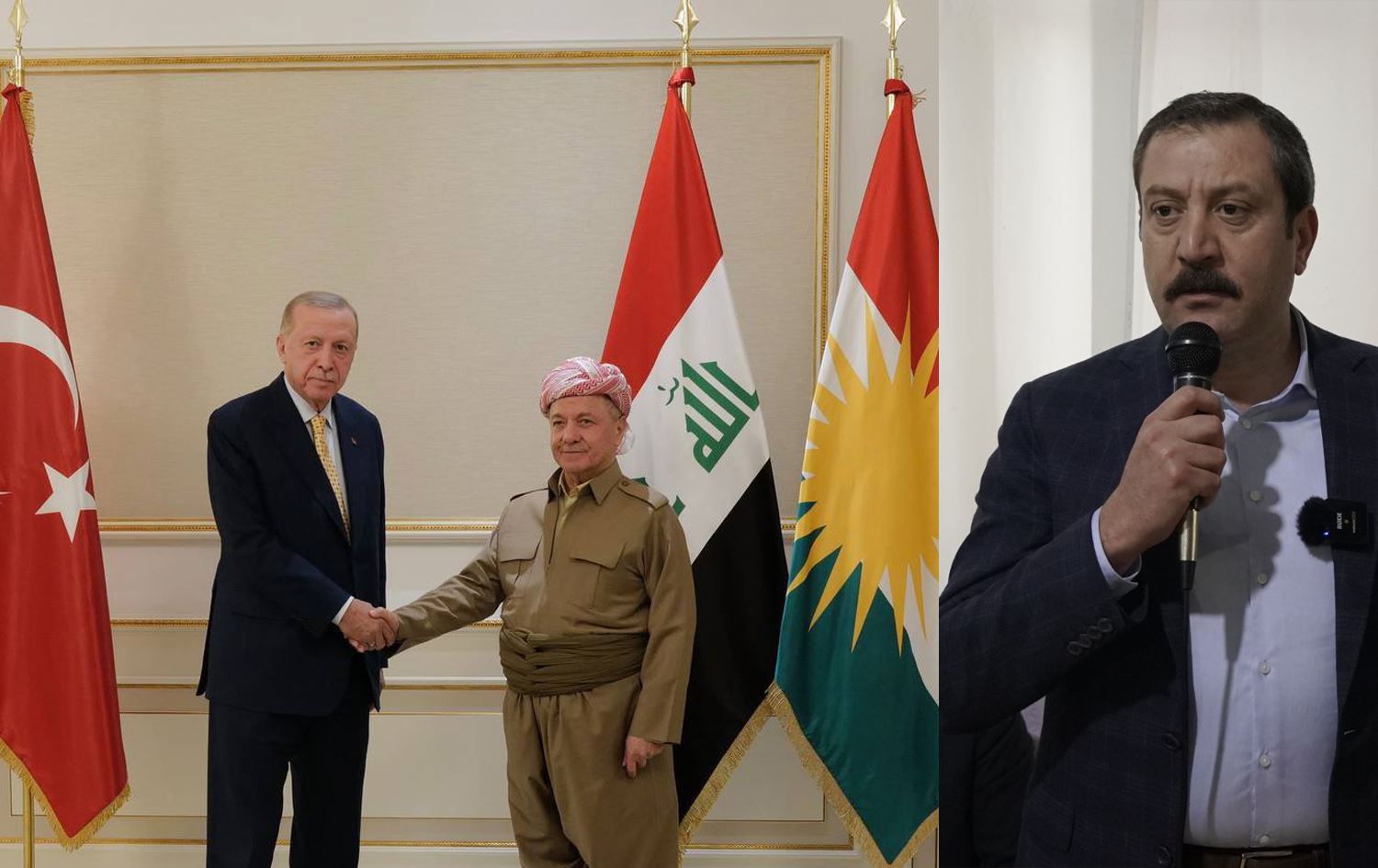 Sîraç Ensarîogluyê kurê Parlamenterên AK Partiyê Salîm Ensarîoglu li ser hesabê xwe yê medyaya civakî wêneyekî Serok Mesûd Barzanî û Serokkomarê Tirkiyeyê Recep Tayyîp Erdogan yê li ber Aalaya Kurdistanê belav kir û got: