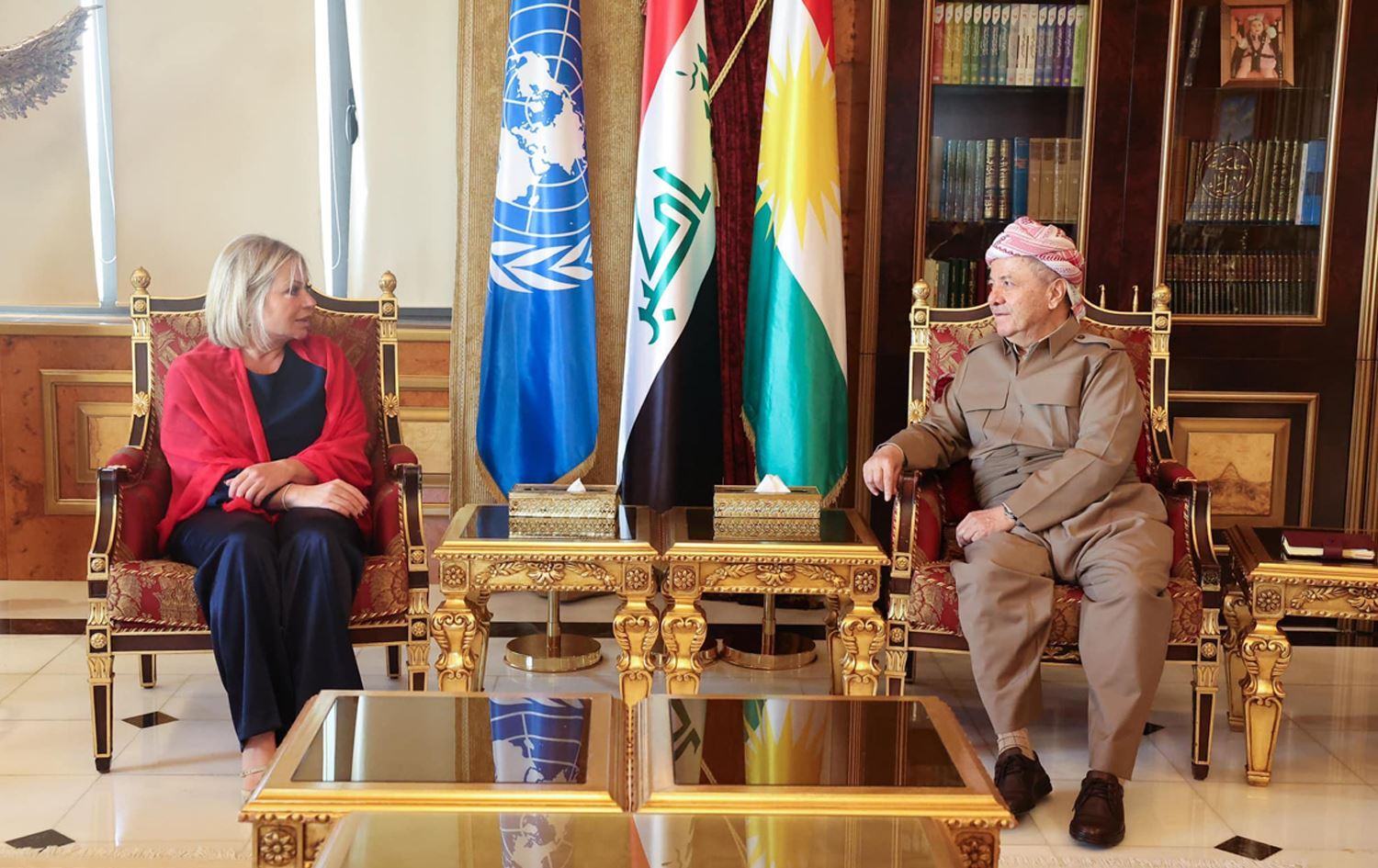 Hewlêr (Rûdaw) – Serok Mesûd Barzanî û Nûnera Taybet a Sekreterê Giştî yê Neteweyên Yekgirtî ya Îraqê Jeanine Plasschaert civiyan