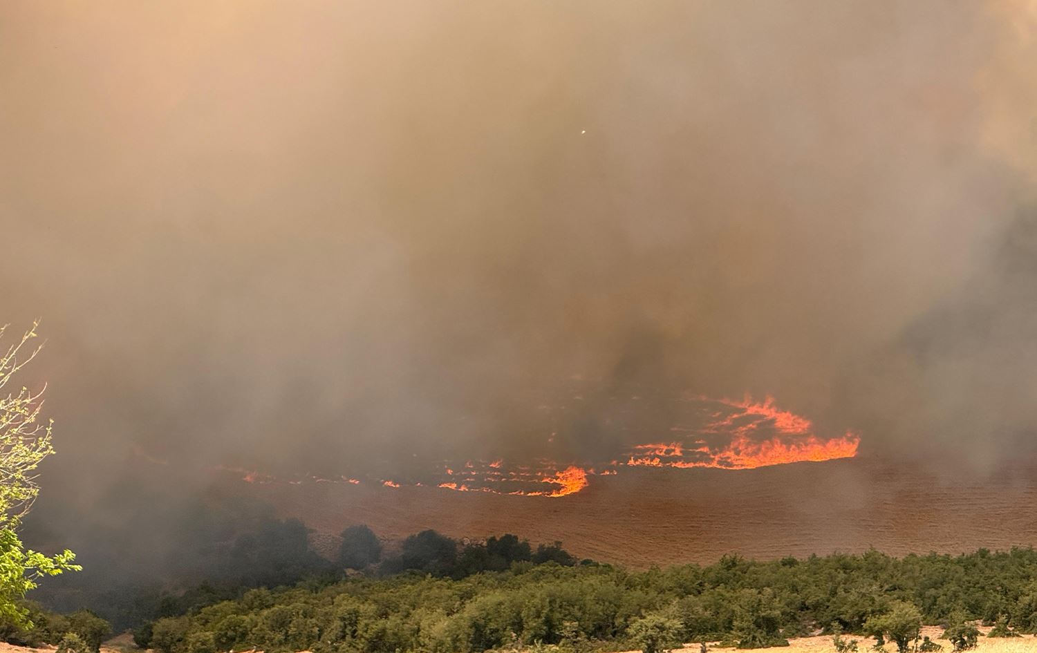 Li ser agahdarkirinê tîmên agirvemirandinê yên Şaredariya Bajarê Mezin a Dîlokê û tîmên Saziya Herêmê ya Daristanê ya Mereşê çûn cihê bûyerê.
