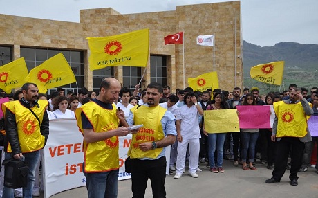 Xwendekarên Peymangeha Pîşeyê Tenduristiyê bi cilên xwe yên sipî beşdarî xwepêşandanê bûn û hima him dirûşmeya 'Em ne baytar in, em tenduristkar in' berz kir. Ji ber ji bo Peymangeha Tenduristiyê Gerînedeyê Veterîneriyê, Serokê Beşa Biyolojiyê, Alîkarê Gerînendeyê Veterîneriyê hatine tayînkirin, kerb û hêrsa xwepêşanderan sortir bû.