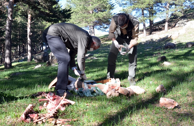 Karmendan goşt, mirîşk û alifên din bo ajelên kovî belav kirin.