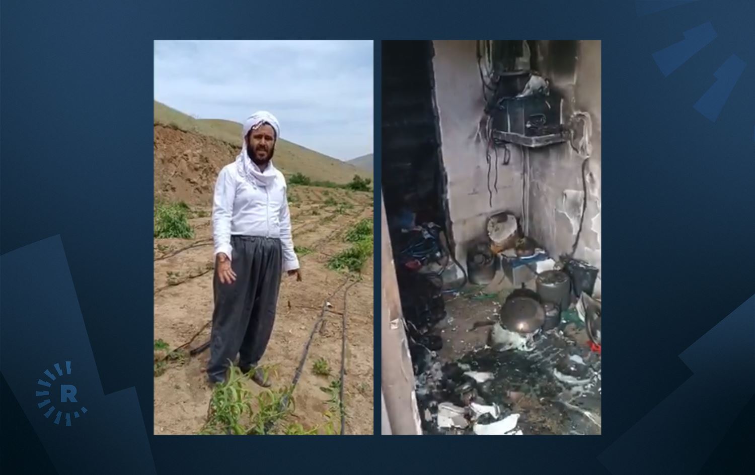 Ew mamosteyê olî yê Kurd behsa bûyerê dike û dibêje, pêr roja 27ê Gulana 2023 serdana baxçeyê xwe kiriye û her tişt li wê derê normal bûye, lê belê roja paştir çûye nav baxçeyê xwe daku baxçeyê xwe av bide û dîtiye ku mala wî hatiye şewitandin û darên baxçe jî hatine qutkirin.