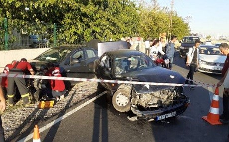 Otomobîla bi şofêrtiya Mehmet Ekicî û otomobîleke din bi şofêrtiya Cengiz Durmuş ku ji aliyê beramber ve dihat lihev ketin.