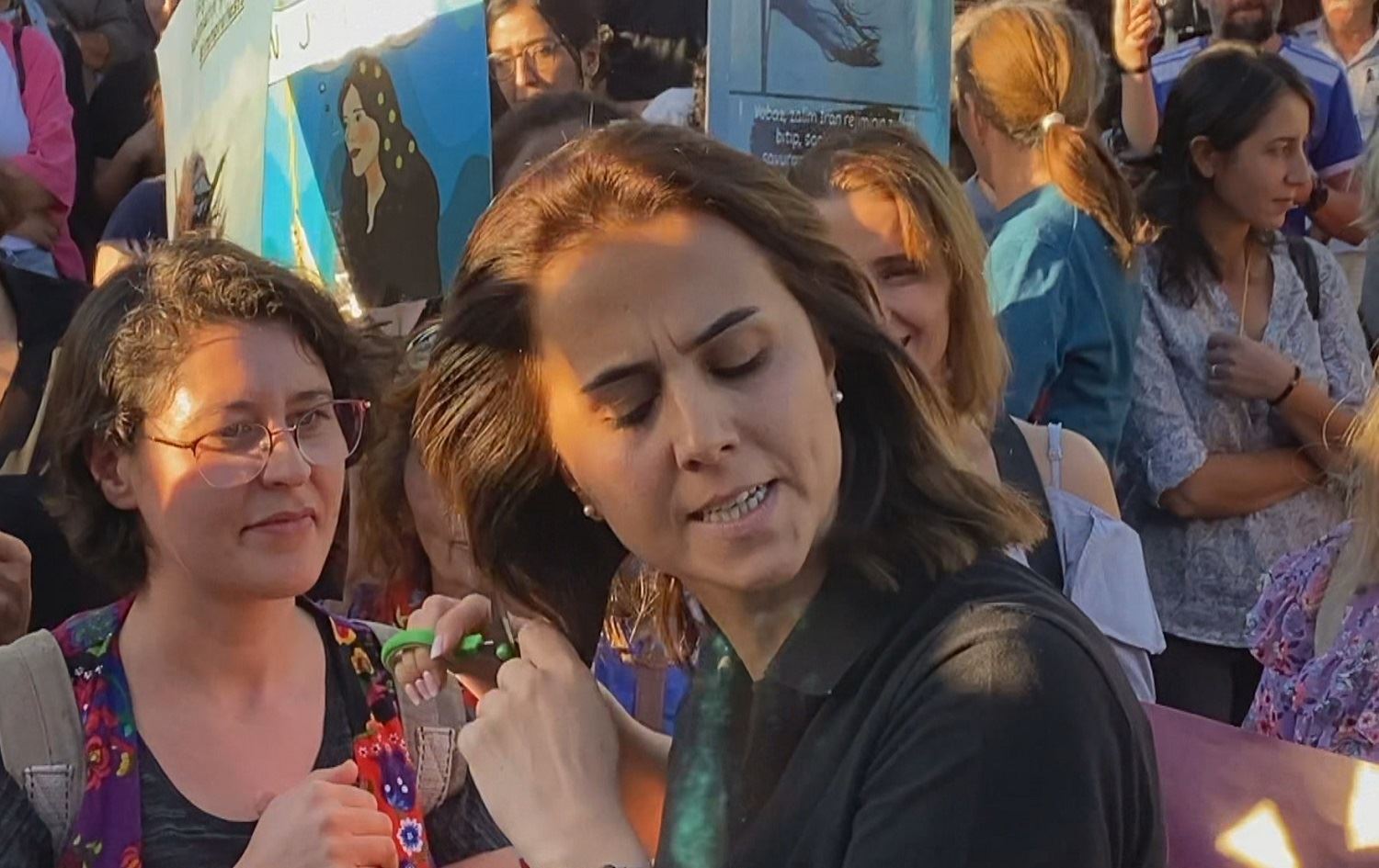 Di çalakiya protestoyî de gelek jinan jî bi birîna porên xwe nerazîbûna xwe ya li hemberî rejîma Îranê nîşan dan.