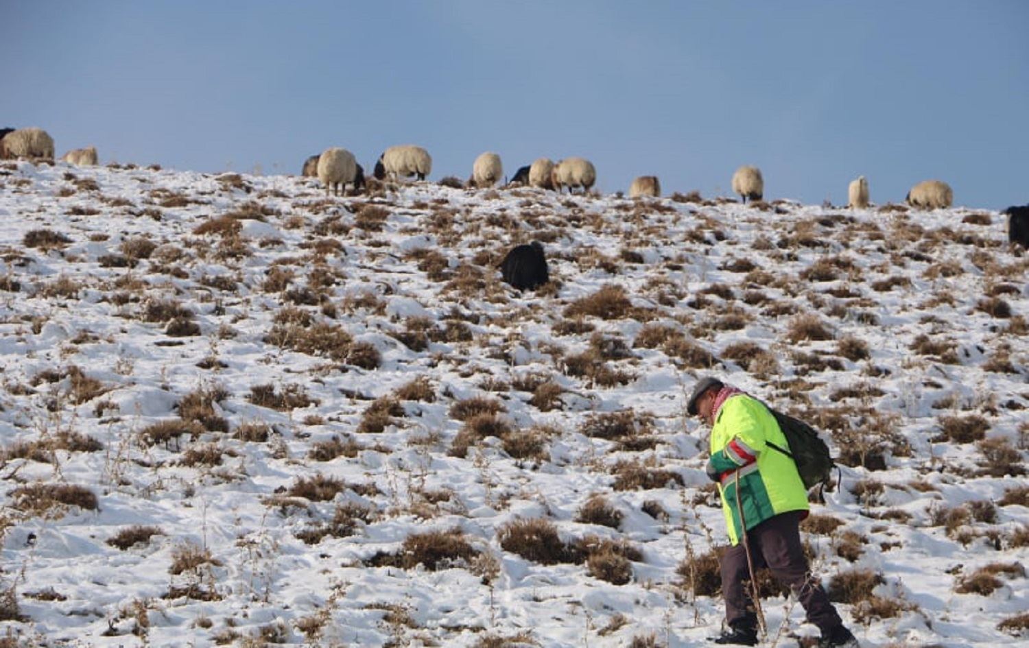 Arif Omgun jî şivanê pez e û dibêje, “Salê 8 mehan li cem me zivistan e. tenê 4 mehên me hene. niha jî zivistan e û serma ye. heta 8 mehan em di vî halî de ne.”