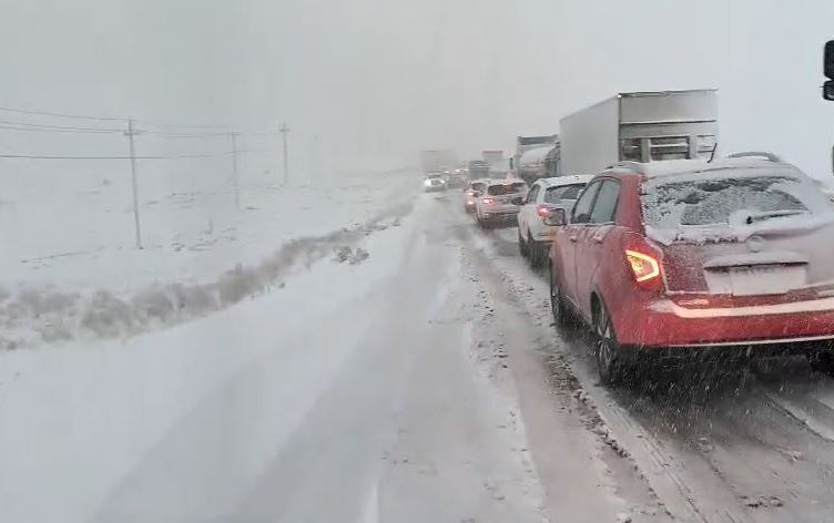 Rêya Hewlêr-Koyeyê ji ber berfê girtî ye û gelek otomobîl asê mane.