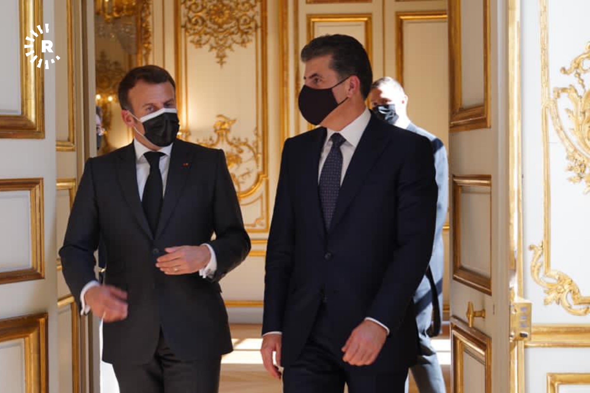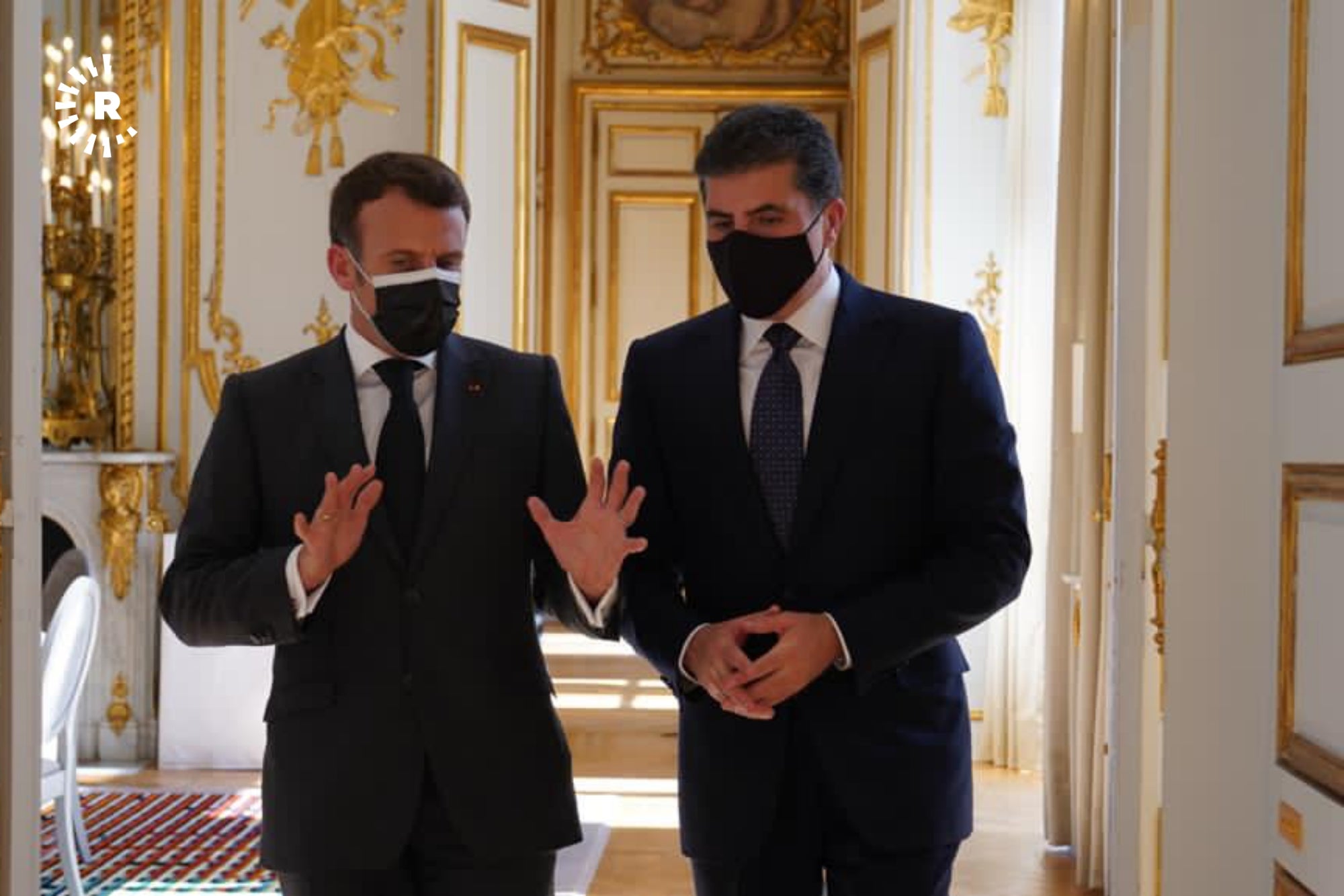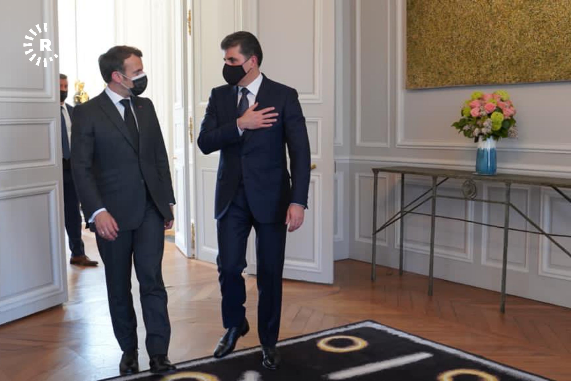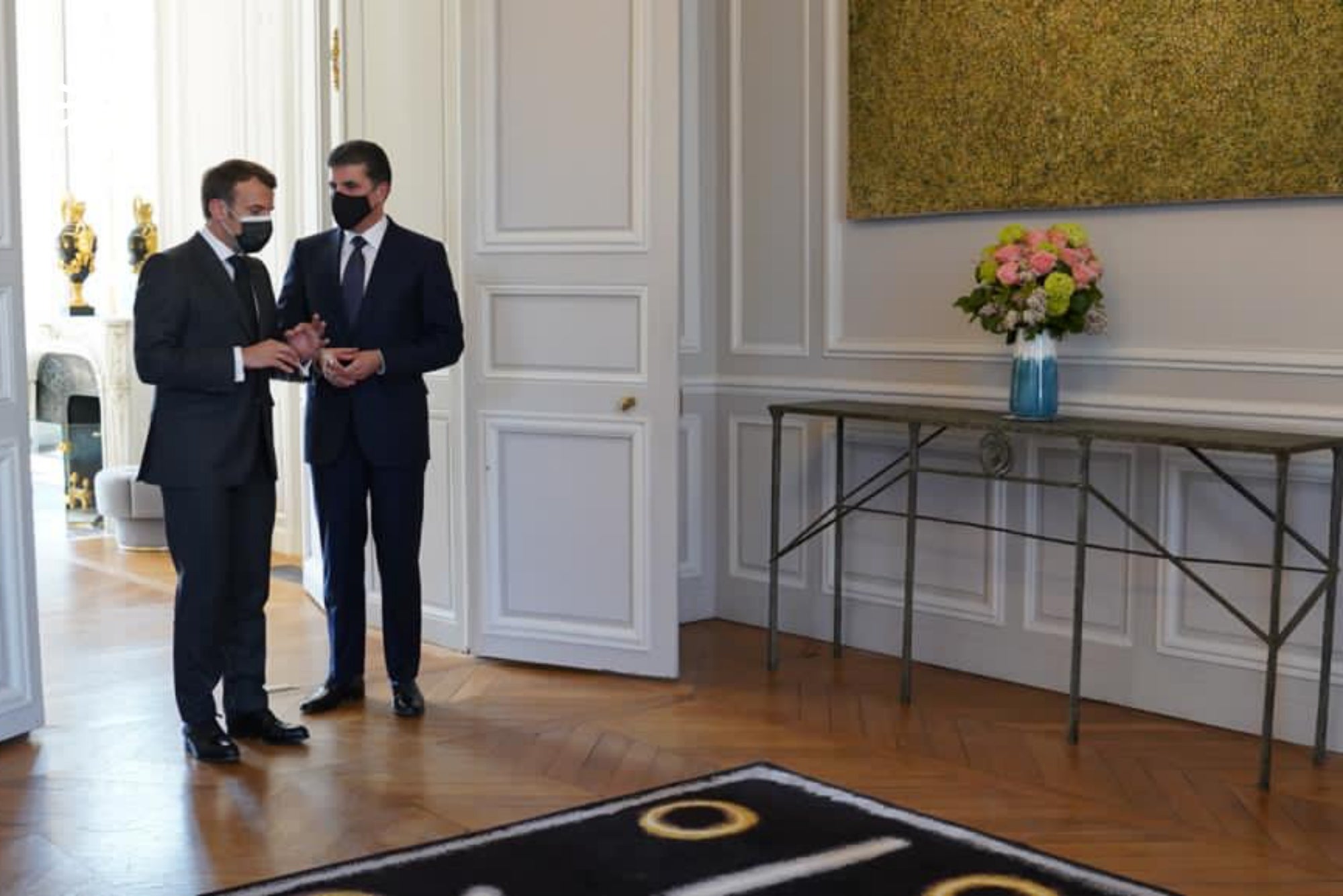 Hevdîtina Barzanî û Macron du saetan berdewam kir.