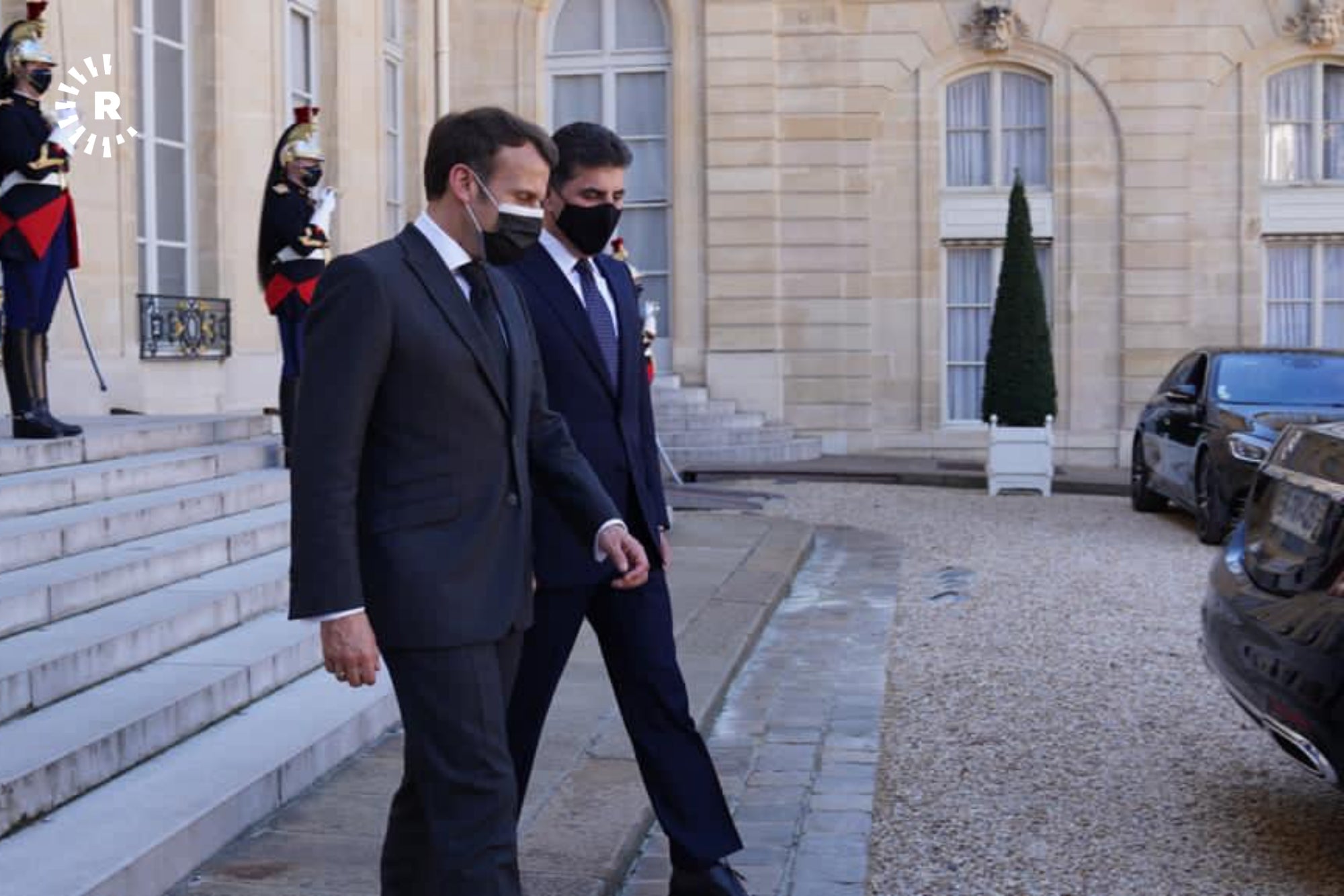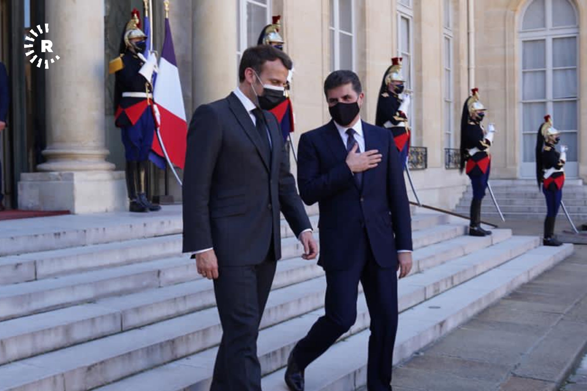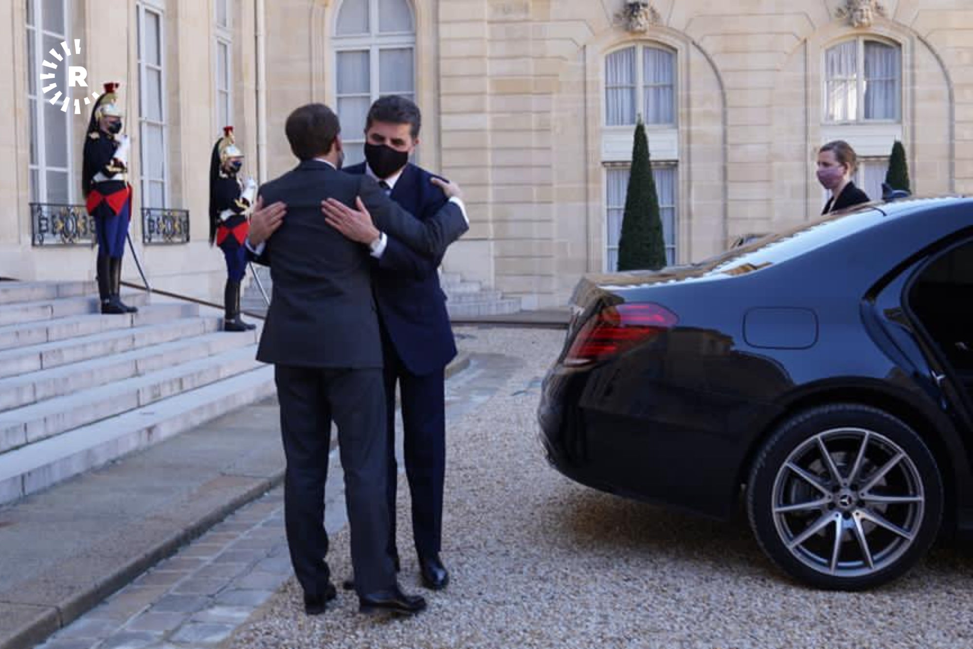 Serokê Herêma Kurdistanê Nêçîrvan Barzanî îro Sêşemê 30ê Adara 2021ê li Koşka Elyseeyê ji aliyê Serokomarê Fransayê Emmanuel Macron ve pêşwaziyeke germ û dostane lê kir.