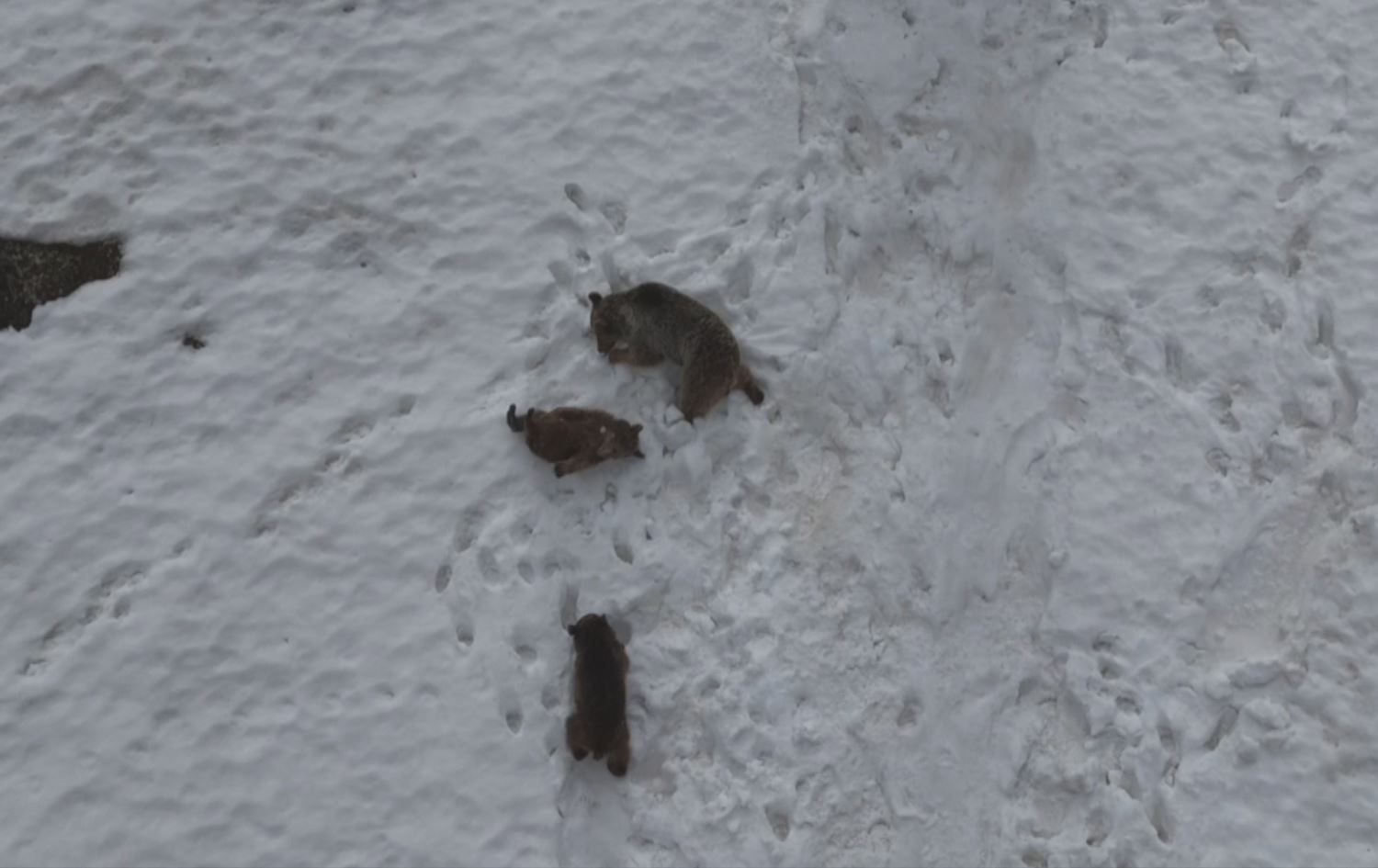 Li navçeya Pilemûriyê jî dîmenên malbateke hirçan a ku ji xewa zivistanê hişyar bûye bi dronê hatin girtin.