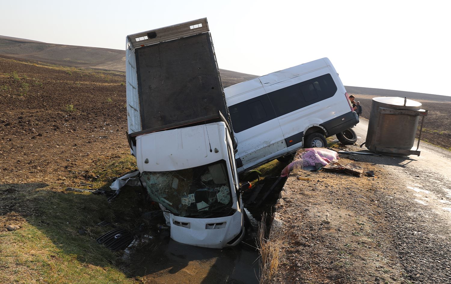 Di qezayê de ajokarên kamyonet û minîbusê û 15 mamosteyên ku di minîbusê de bûn birîndar bûn.