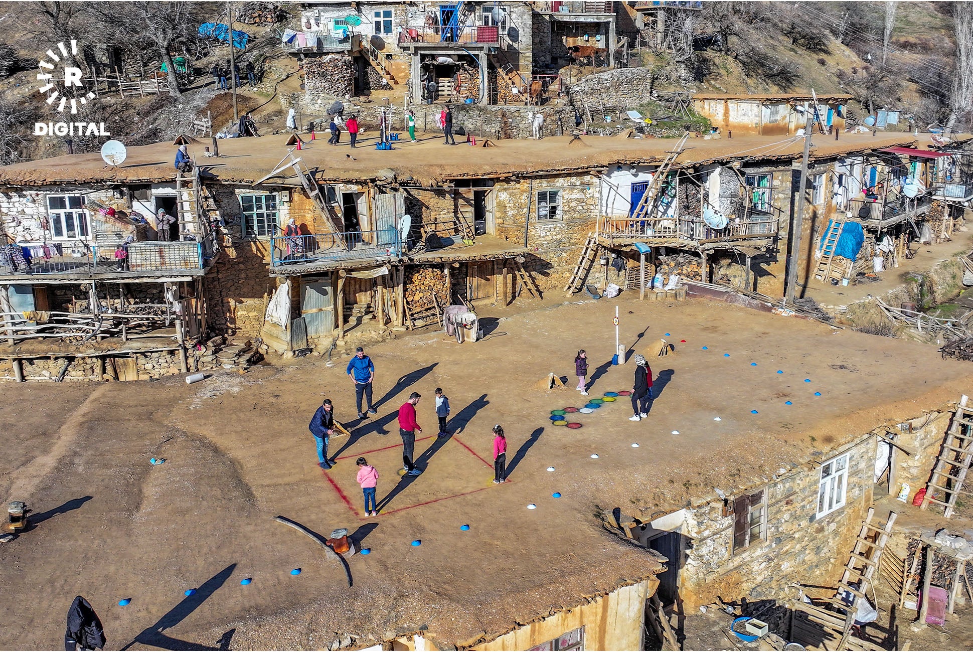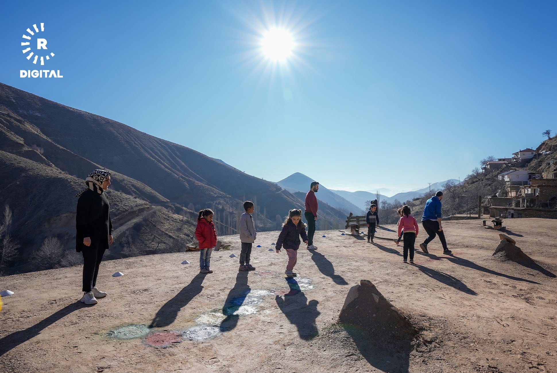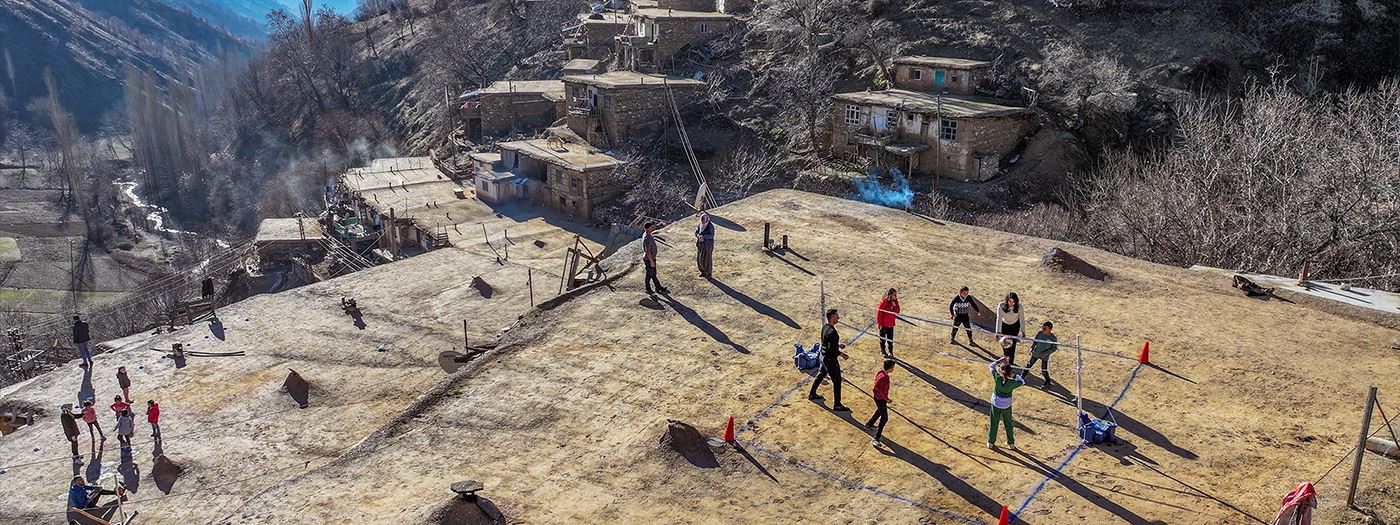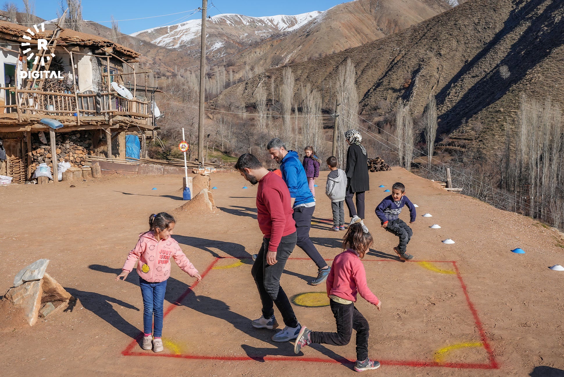 Mamosteyên werzîşê di çarçoveya projeyê de li gundan digerin û bi zarokan re lîtikên berê dileyizin.