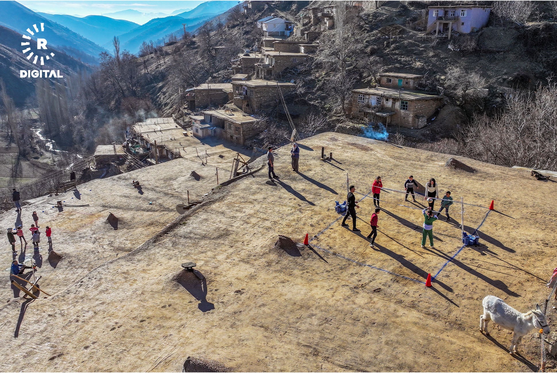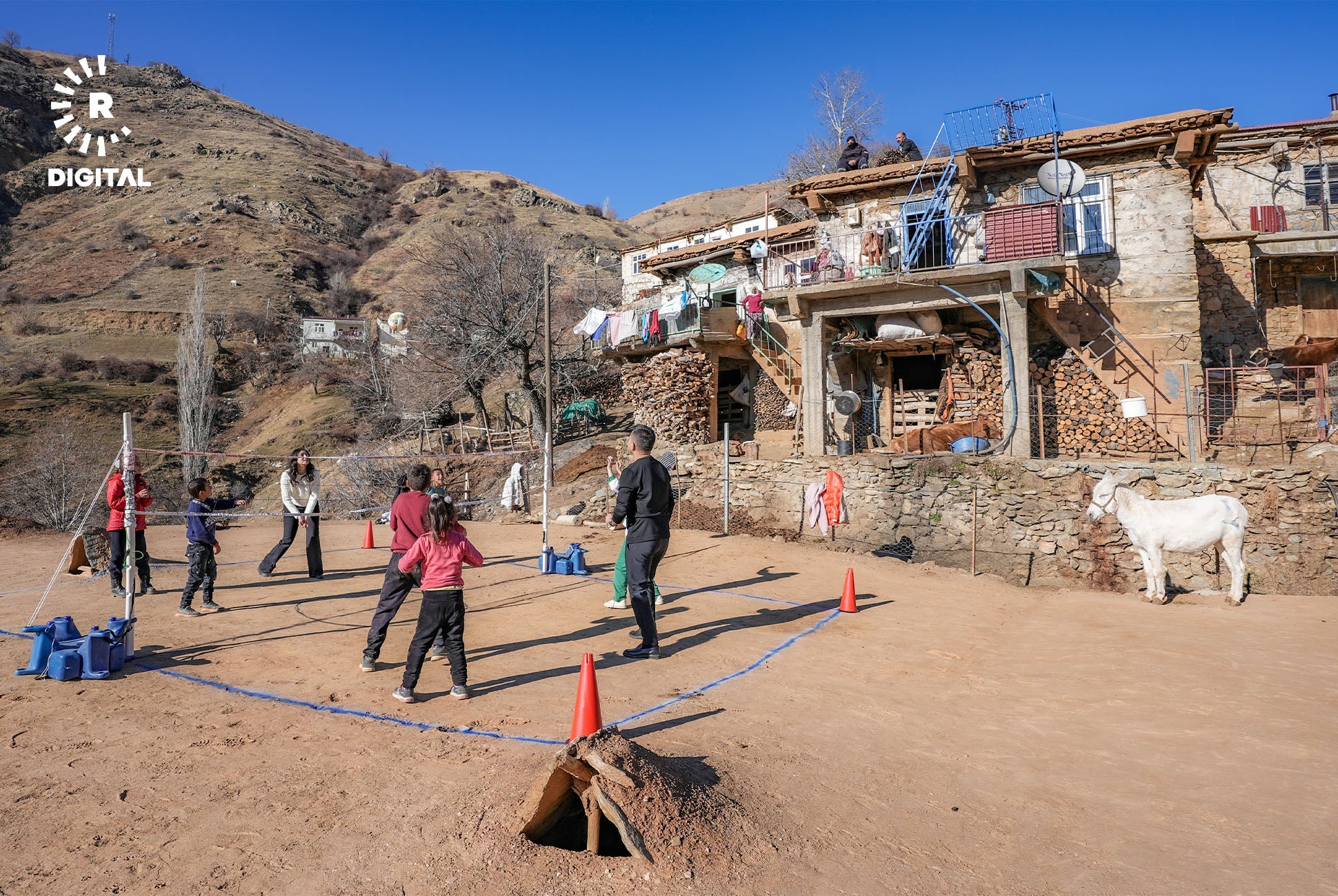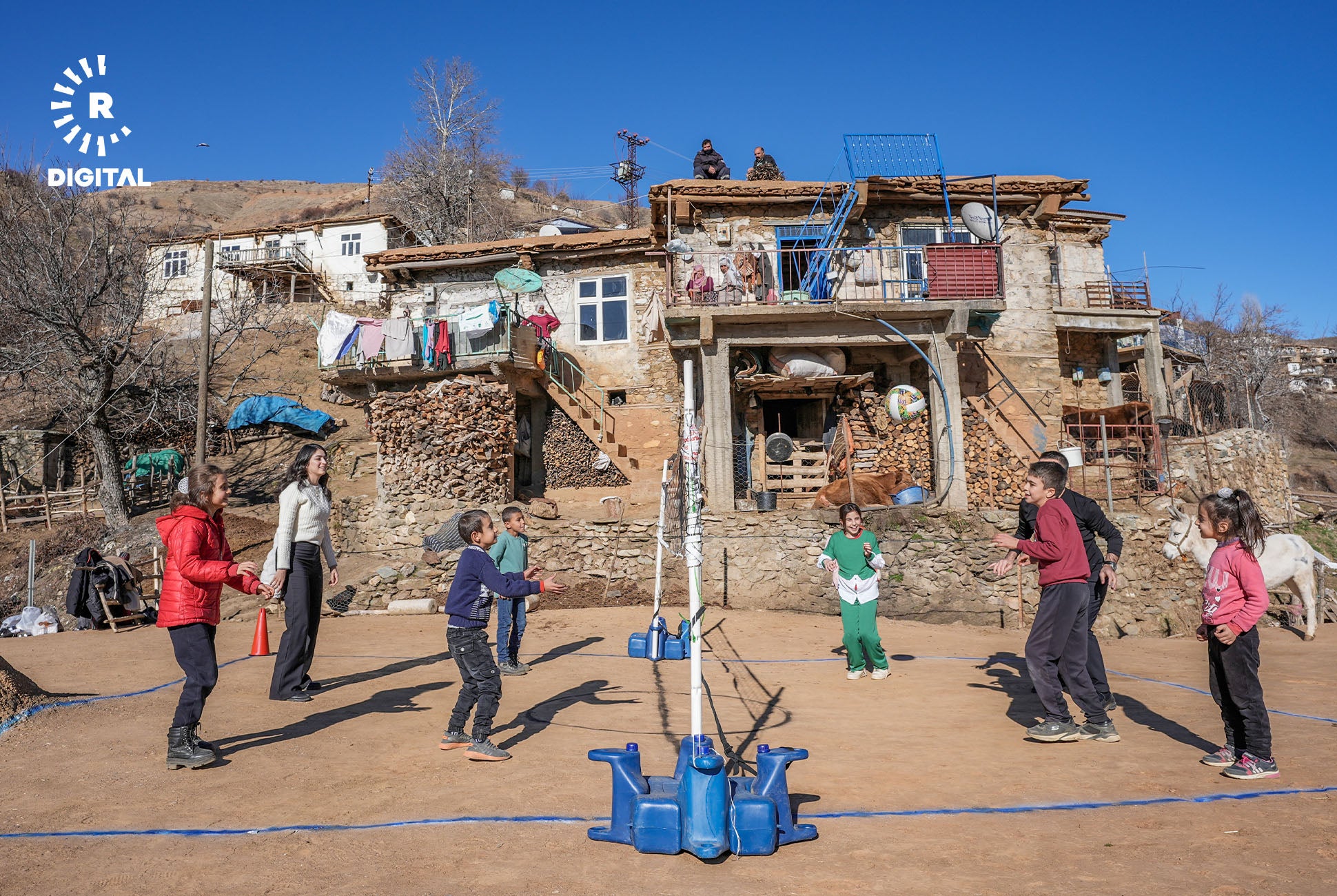 Mamosteyên werzîşê di çarçoveya projeyê de li gundan digerin û bi zarokan re lîtikên berê dileyizin.