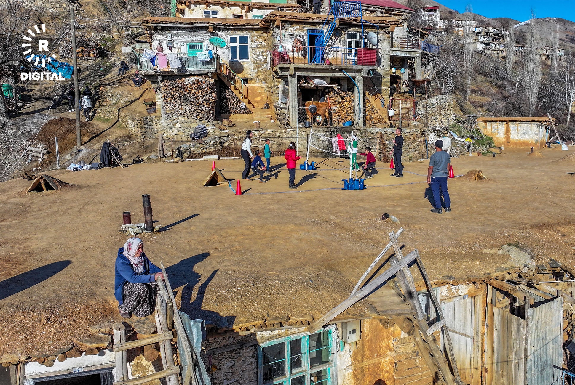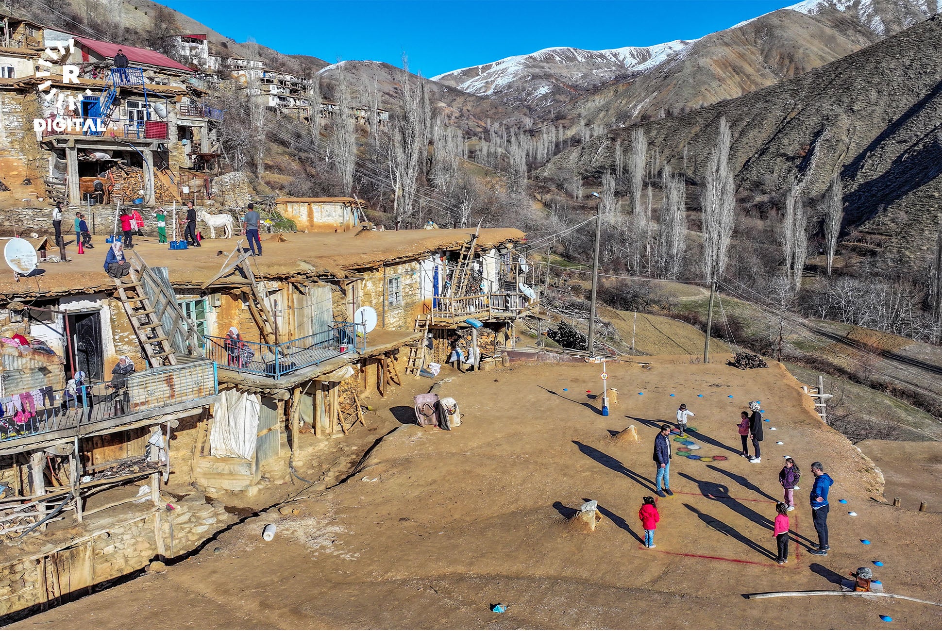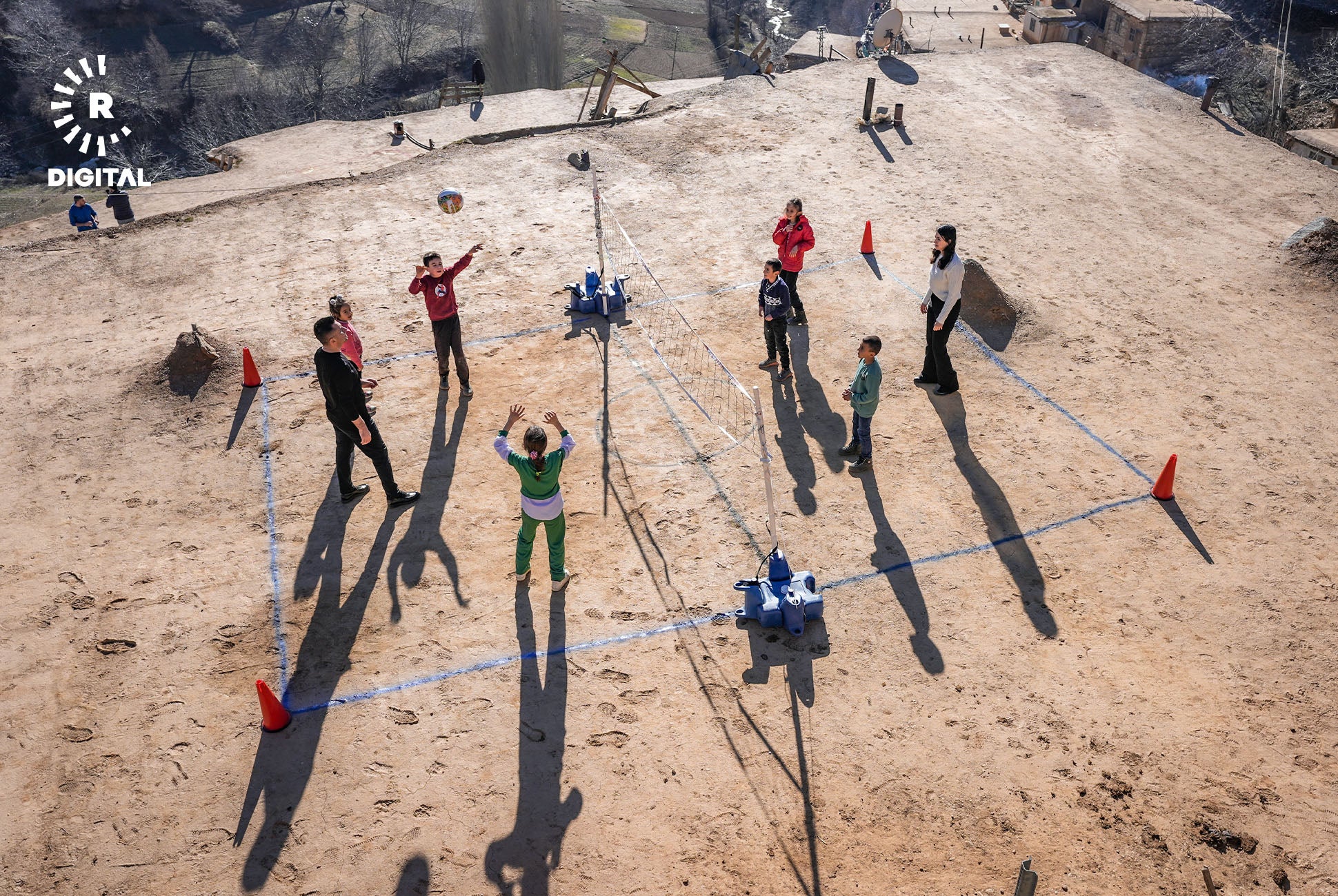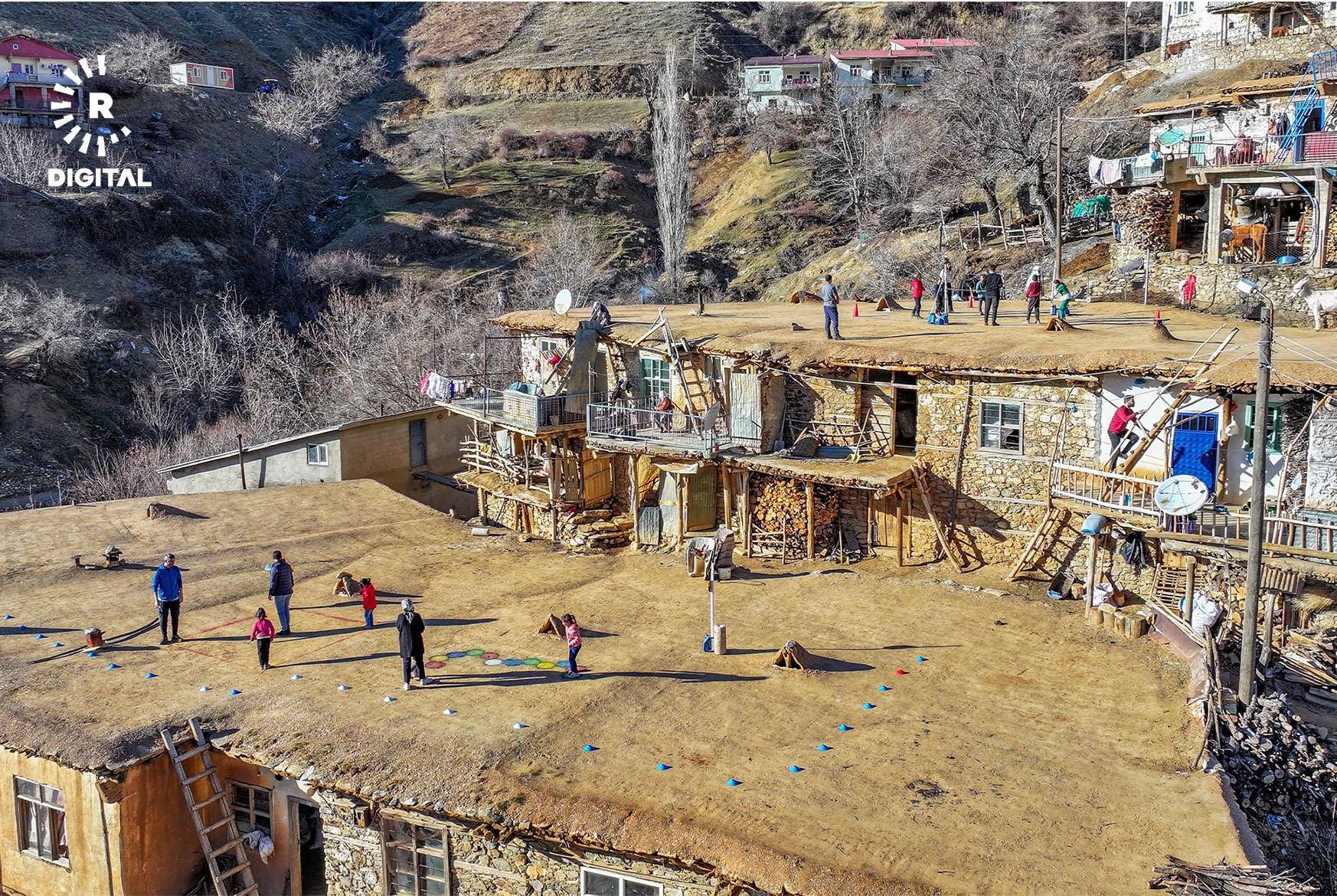 Mamosteyên werzîşê di çarçoveya projeyê de li gundan digerin û bi zarokan re lîtikên berê dileyizin.
