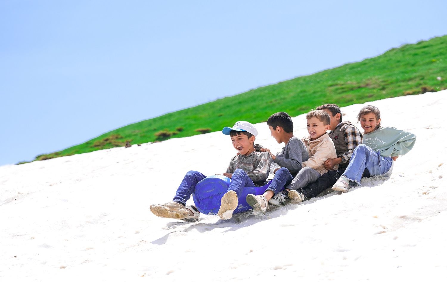 Hewlêr (Rûdaw) - Li navçeya Elkê ya parêzgeha Şirnexa Bakurê Kurdistanê her çend em di tîrmehê de bin jî li Zozanê Faraşînê berf hîn neheliyaye û zarok xwe li ser dişemitînin.