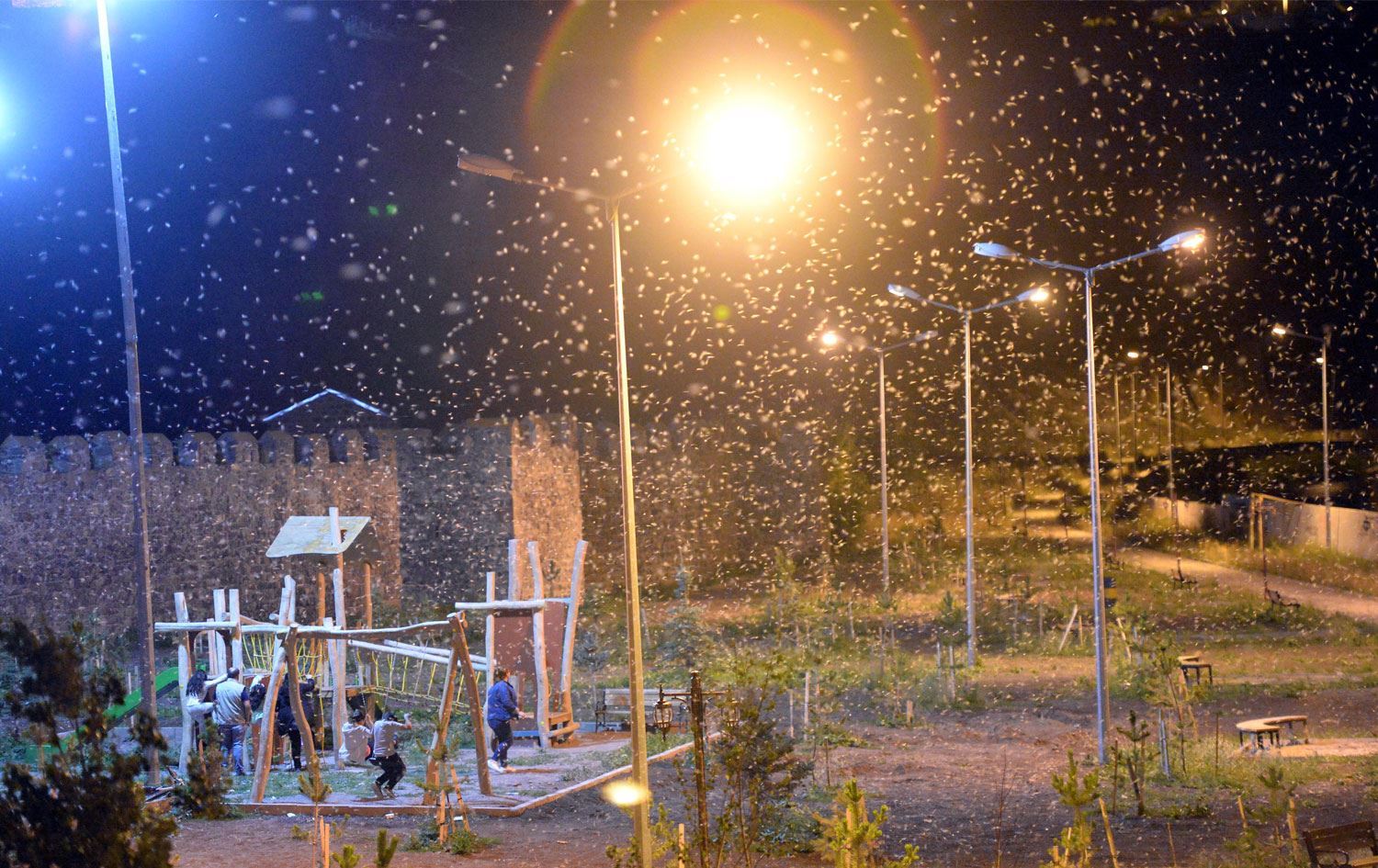 Li perava Çemê Kura ya parêzgeha Erdexanê nêzîkî hefteyekê ye bi şevan perperikên spî li derdora lempeyên ronahiya kolanê kom dibin û ji ber temenê xwe yê yek rojî reqsa xwe ya dawî dikin û dimrin.