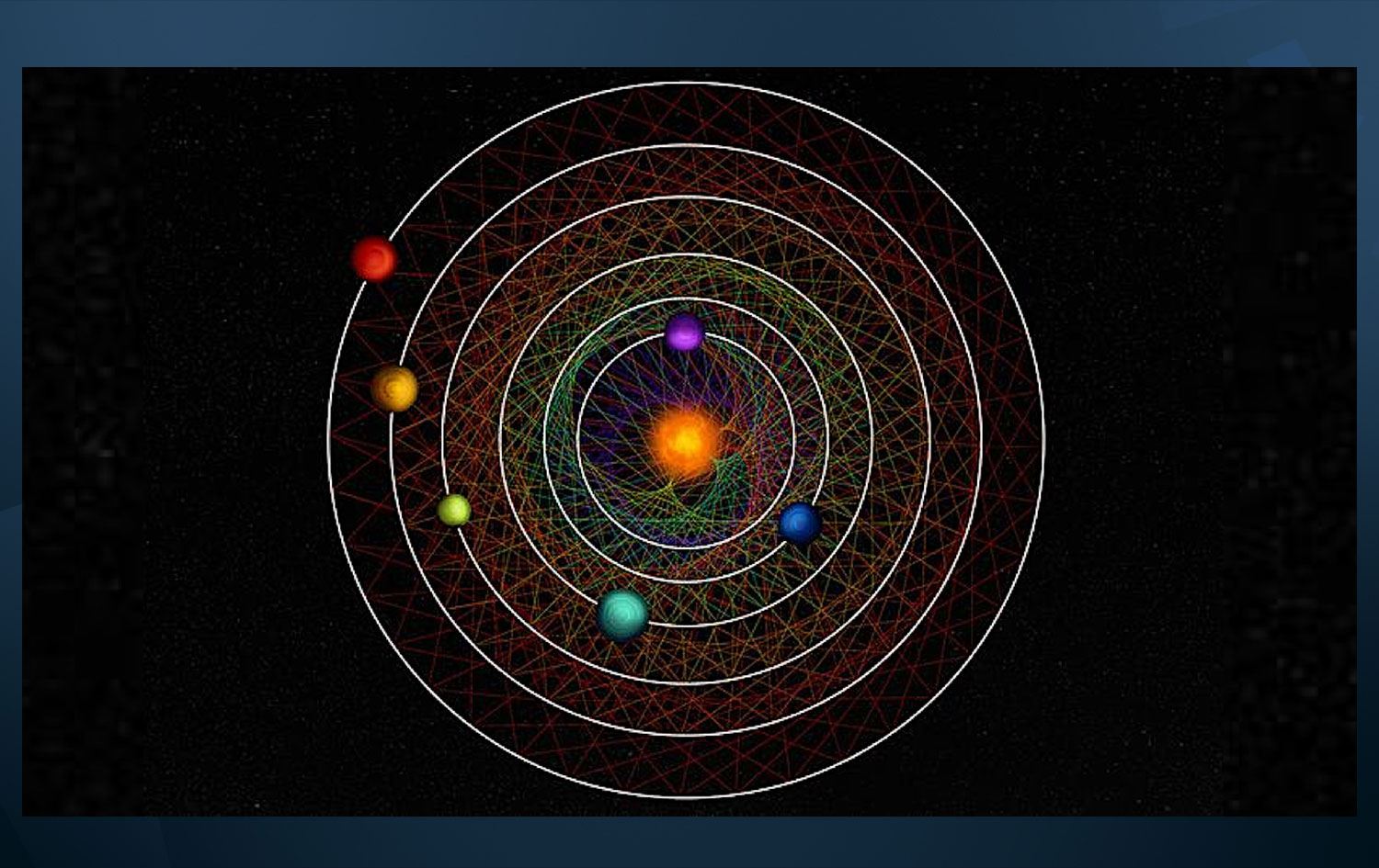 Ev tevgerên tevlihev, bi serê xwe ewqasî rêkûpêk in ku stêrknasan ji bo her gerestêrkê notek û rîtmek diyar kirin ango ev tevger vegerandine muzîkê.