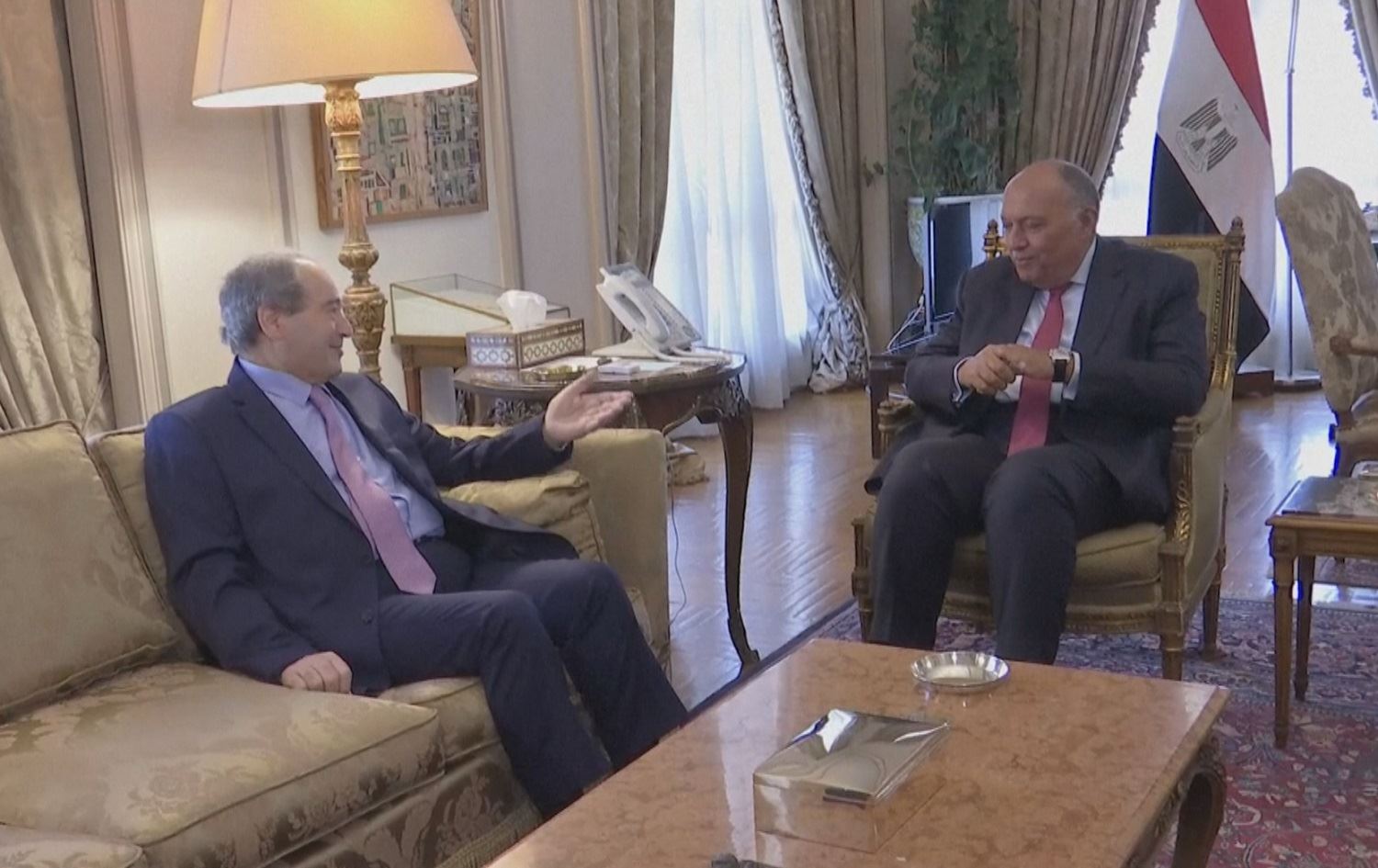 Hewlêr (Rûdaw) - Wezîrê Derve yê Sûriyê Feysel Miqdad piştî 12 salan cara yekemîn bi serdaneke fermî çû Misrê û ji aliyê aliyê Wezîrê Derve yê Misrê Samih Şukrî ve hate pêşwazîkirin.