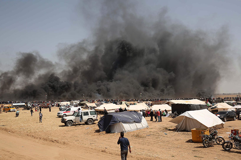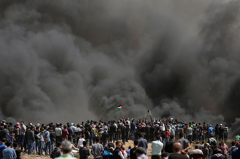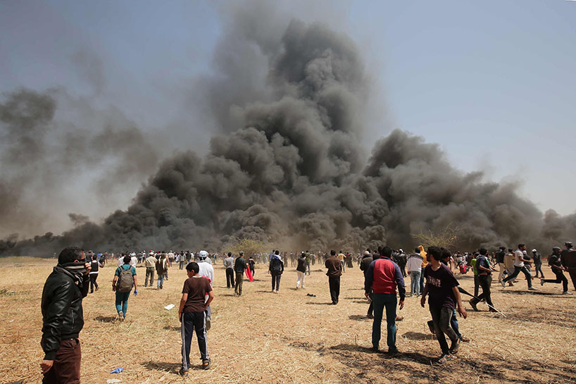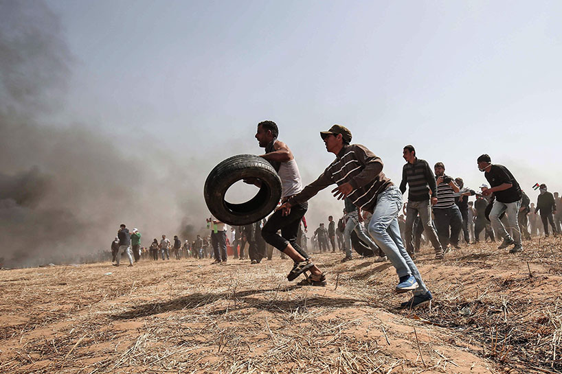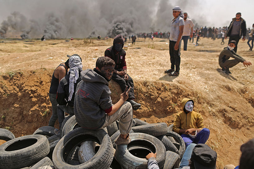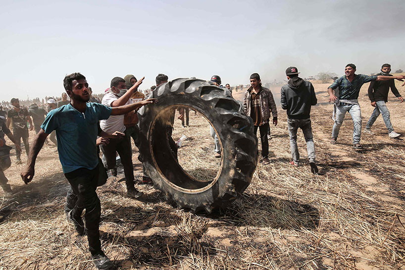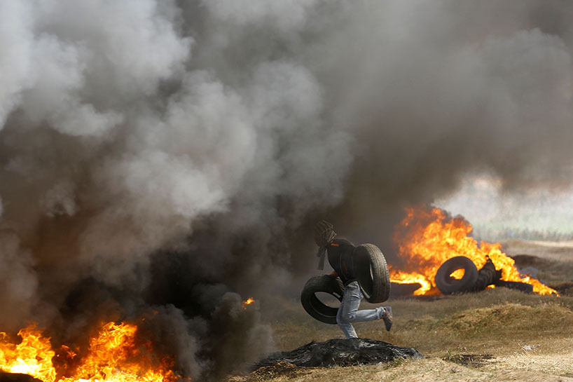 Vê sibê (06-04-2018) çend xwepêşanderan li nêzîkî bajarê Xezzeyê agir bi lastîkên otomobîlan berdan.