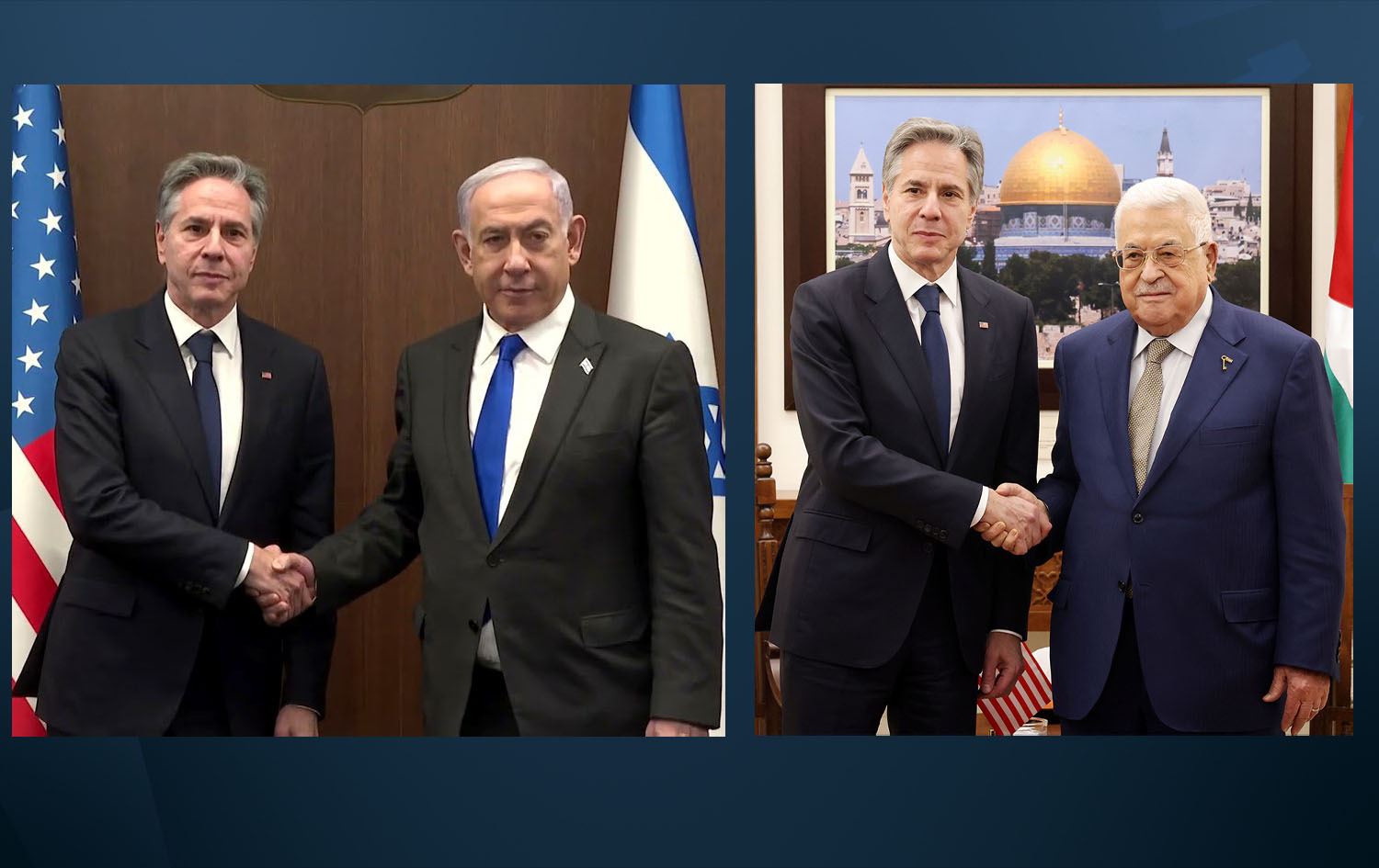 Blinken li wê derê ji aliyê Serokê Desthilata Filistînê Mehmud Ebas ve hat pêşwazîkirin û wan gotûbêj li ser egera rawestandina şer kir.