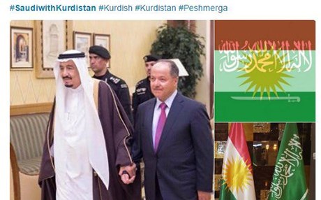Di haştagan de wêneyên serdana Serokê Herêma Kurdistanê Mesûd Barzanî ya ji bo Erebîstanê, ligel wêneyê nexşeya Kurdistanê û pêşmerge hatiye amadekirin. Herwiha gelek siyasetmedarên vî welatî jî di vê mijarê de twîtt nivîsîne.