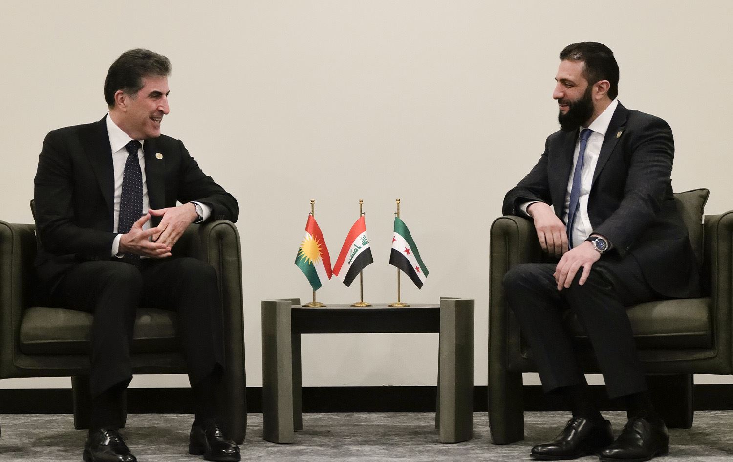 Hewlêr (Rûdaw) – Serokê Herêma Kurdistanê Nêçîrvan Barzanî bi Serokkomarê Sûriyeyê Ehmed Şer re civiya.