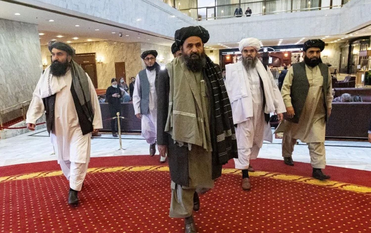 Endamên şanda Talîbanê di danûstandinên aştiyê yên Efxanistanê de. Wêne: Alexander Zemlianichenko/Pool bi rêya Reuters