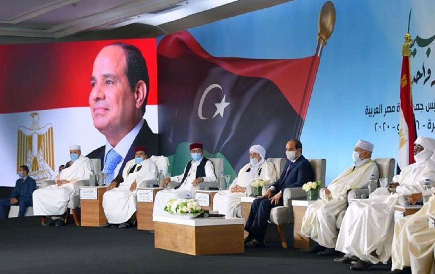 Serokê Misirê Ebdulfetah Sîsî di civînekê de li gel serok eşîrên Lîbyayê, îro Pêncşemê 16ê Tîrmeha 2020 li Qahîreyê.