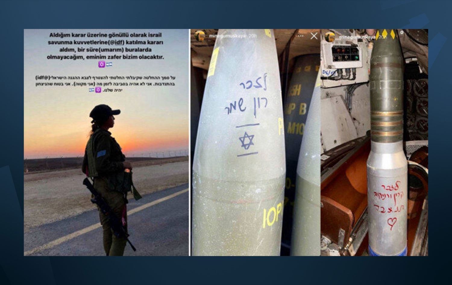Mîne Gumuşkayayê wêneyên xwe yên bi cil û bergên artêşa Îsraîlê û mûşekên ku nivîsên bi zimanê Îbranî li ser wan hane parve kirin.