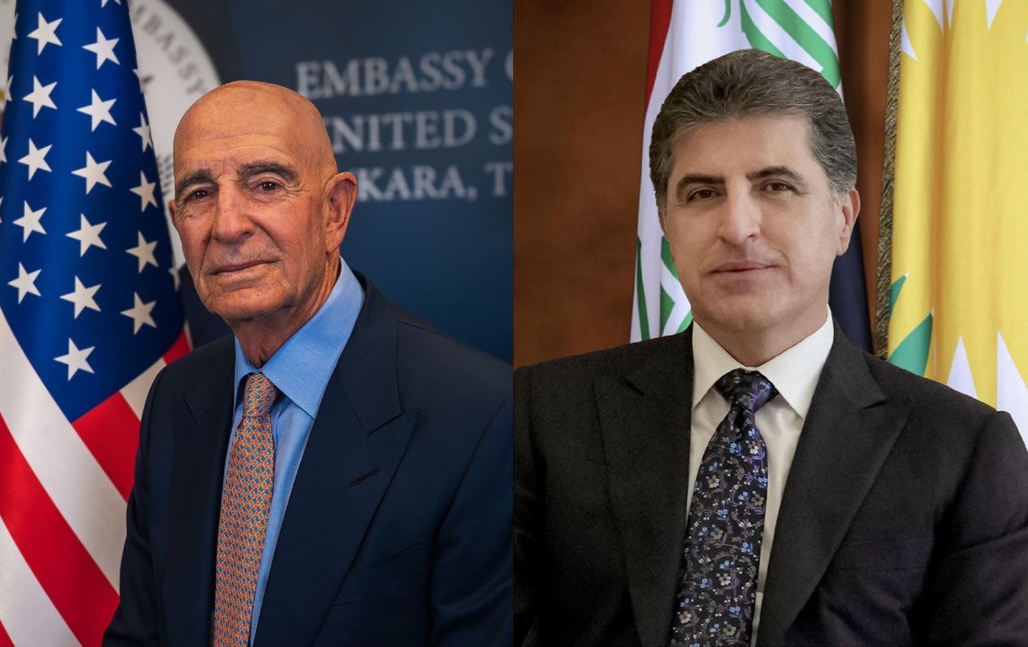 Serokê Herêma Kurdistanê Nêçîrvan Barzanî û Balyozê Amerîkayê yê Tirkiyeyê û Nûnerê Taybet ê Amerîkayê yê Kar û Barên Sûriyeyê Thomas Barrack îro bi telefonê axivîn.
