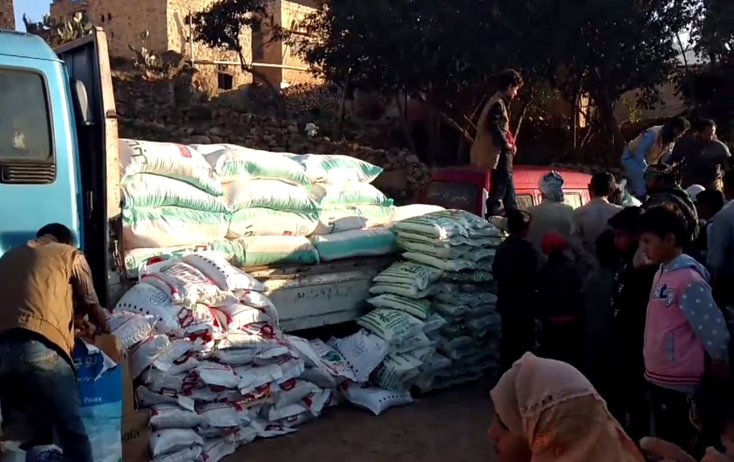 Ew alîkarî ji Başûrê Kurdistanê ve ji aliyê Dezgeha Xêrxwaziya Barzanî ve hatine berhevkirin û li gundê Beytel Kurdiye ew alîkariyên mirovî li ser 140 malbatên ku bi eslê xwe Kurd in û ji berê ve li Yemenê dijîn, hatin parvekirin.