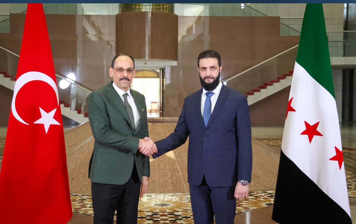 “Serokê Rêxistina Îstixbarata Neteweyî(MÎT) Îbrahim Kalin, li paytext Şamê ya Sûriyeyê bi Serokê Birêvebiriya nû ya Sûriyeyê Ehmed Şer û Wezîrê Karên Derve Esehd Hesen Şeybanî re hat ba hev.”