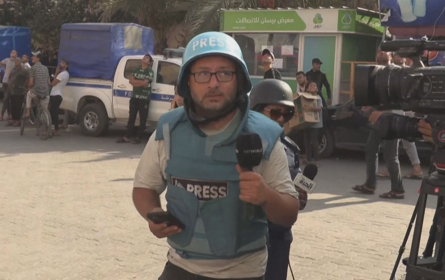 Wael Dahdouh, rojnamegerê Kanala Cezîre ye, di dema rûmalê de nûçeya canjidestdana jin, keç û kurê wî yê biçûk gihandinê.