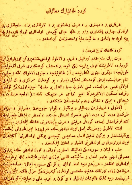 “Di serdema Imperatoriya Osmanî de, li beşê bakurê Sûriyê, bi taybetî li Qamişlo û Efrîn, Kurd hene û kesek nikare vê yekê bide mandelê. Lê Bayîr Bucak xaka Turkmenan e û li vê navçeyê Çiyayê Turkmenan pêk tê û bi berevajî vê yekê tiştek nîne bi navê Çiyayê Kurdan li vê navçeyê. Tiştê ku ez dixwazim tekeziyê li ser bikim, ew e ku Çiyayê Turkmenan û Çiyayê Kurdan hene û çavkaniyên dîrokî jî bi hemû awayan tekez kirine ku nabe siyaset li ser vê pirsê bibe.”