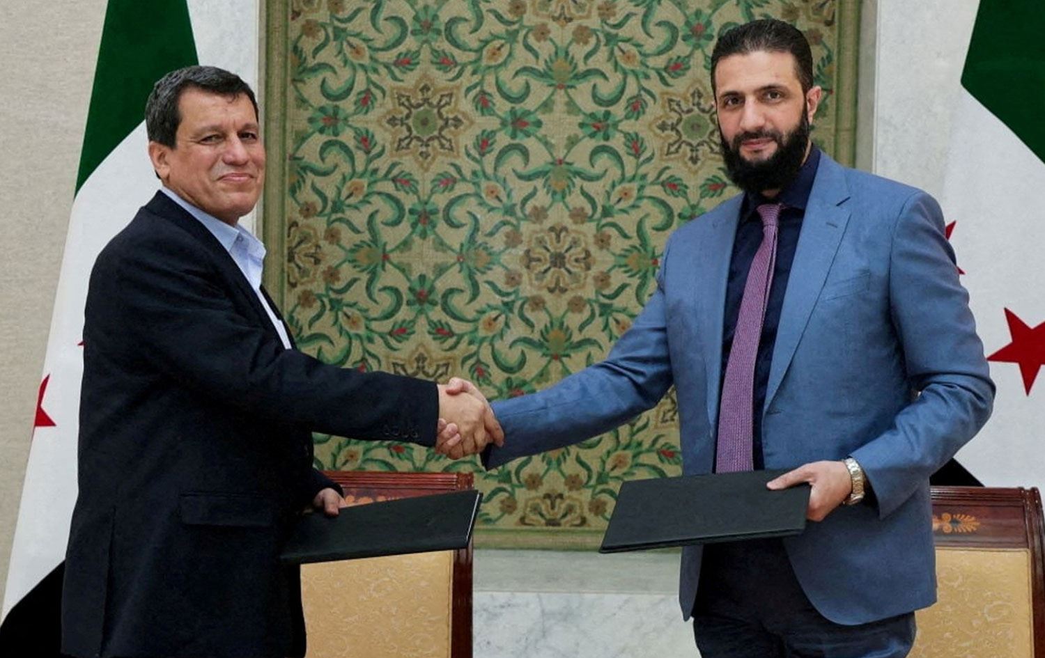 El-Mecelle: Gelo rast e ku di dema gera dan û standinan a bi Wezîr Şeybanî re, hinek post di hikûmeta Sûriyeyê de ji we re hatin pêşniyarkirin? Her wiha rastiya wê gotinê çi ye ku hin welatan post ji we re pêşniyar kirine, di nav de wekî nimûne ku General Mezlûm Ebdî posta Sererkaniyê an Wezîrê Parastinê wergire?