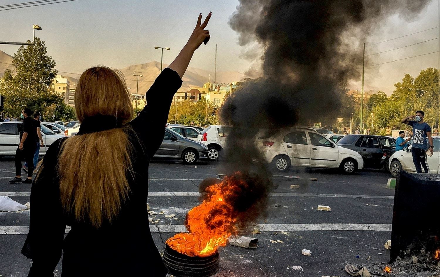Xwepêşandereke jin li bajarê Tehranê, 1ê Cotmeha 2022an di xwepêşandaneke piştî bûyera canjidestdana Jîna (Mehsa) Emînî. Wêne: AFP