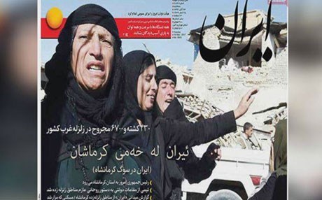 Rojnameya Îran manşêta xwe ya yekem kiriye: Îran di xema Kirmaşanê de.