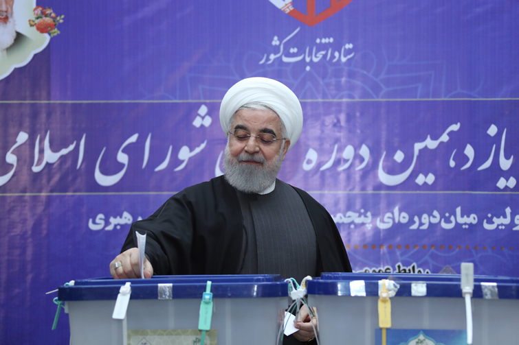Serokomarê Îranê, Hesen Ruhanî îro li binkeya dengdanê ya li Komîteya Hilbijartinan a Wezareta Navxwe ya wî welatî amade bû û ji bo hilbijartinên parlamentoyê dengê xwe bikar anî.