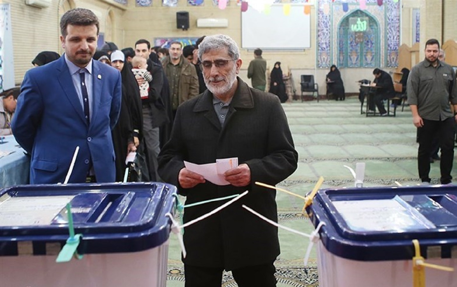 Di berdewamiya birêveçûna proseya hilbijartinên parlamentoya Îranê de, îro danê nîvro Fermandarê Supaya Quds a Supaya Pasdaran a Îranê, General Îsmaîl Qaanî li Tehranê serdana binkeyeke dengdanê kir û dengê xwe avêt sindoqê.