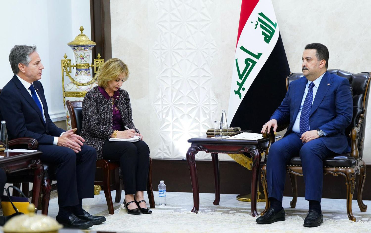 Wezîr Karên Derve yê Amerîkayê Antony Blinken tevî gefên grûpên Şîe yên Îran piştevaniya wan dike çû bBexdayê û bi Serokwezîrê Îraqê Mihemed Şiya Sûdanî re civiya.