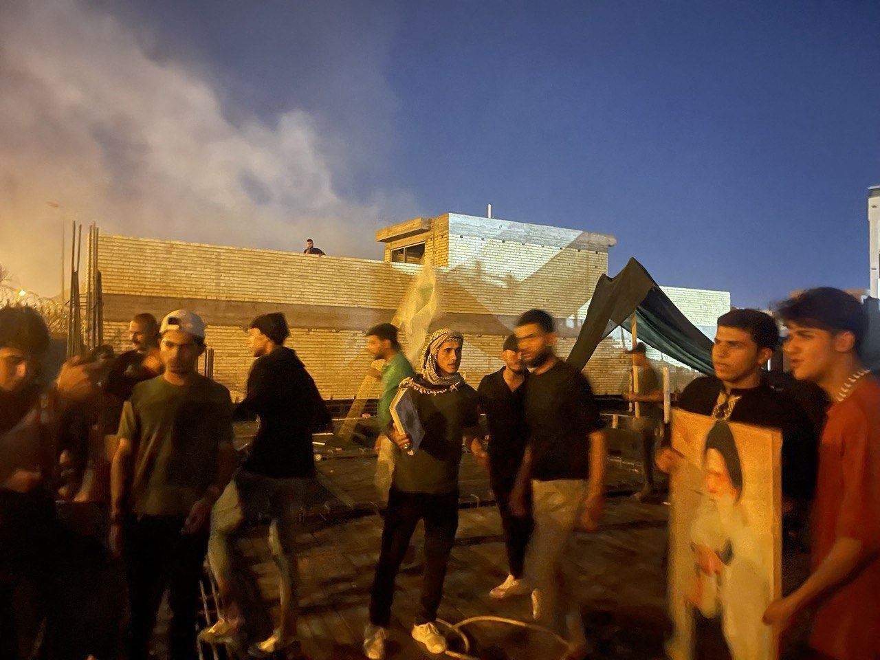 Xwepêşanderên Îraqî dîwarên beton ên li derdora balyozxaneyê hatibûn çêkirin hilweşadin û derbasî hundirê balyozxaneyê bibûn.