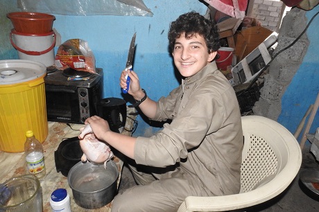 Di wêneyan de diyar dibe ku komeke çekdarên zarok di nav çekdarên din de ne û ji bo wan piştînên bombekirî tên amade kirin.