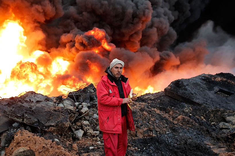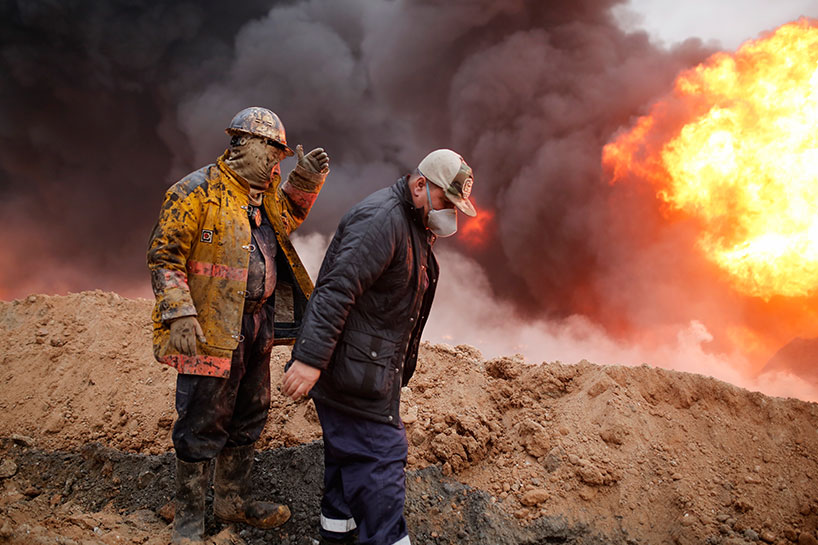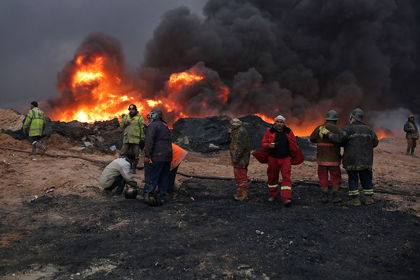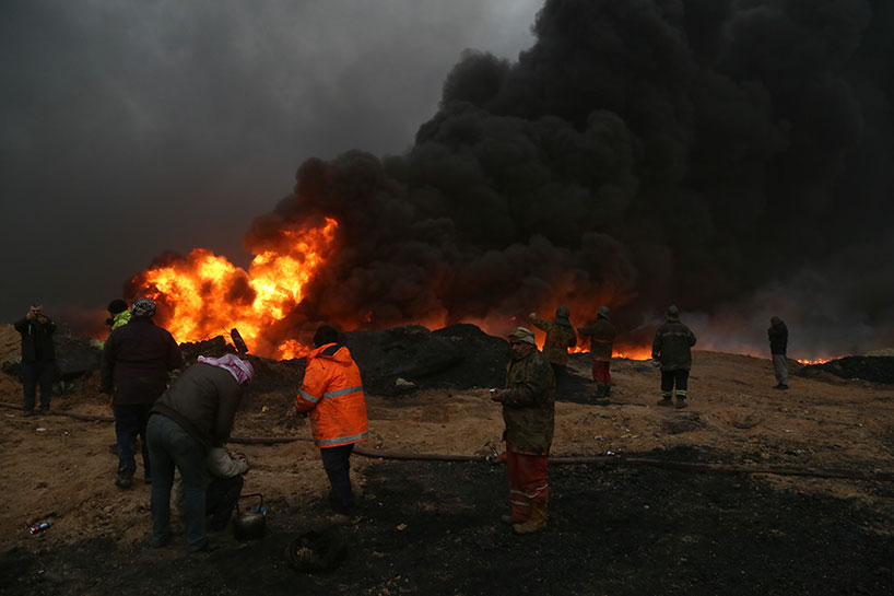 AA - Tevî ku mezintirîn navçeya bajarê Mûsilê Geyare ji destê DAIŞê hat girtin şewata li bîrên petrolê hêj berdewam e. Tîmên agirkujê bi şev û roj kar dikin da ku wî agirî vemirînin.