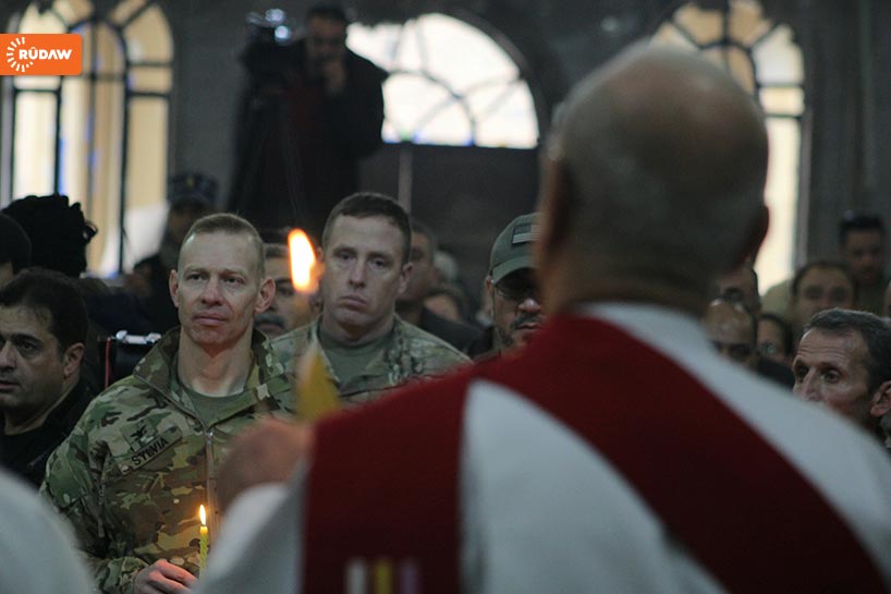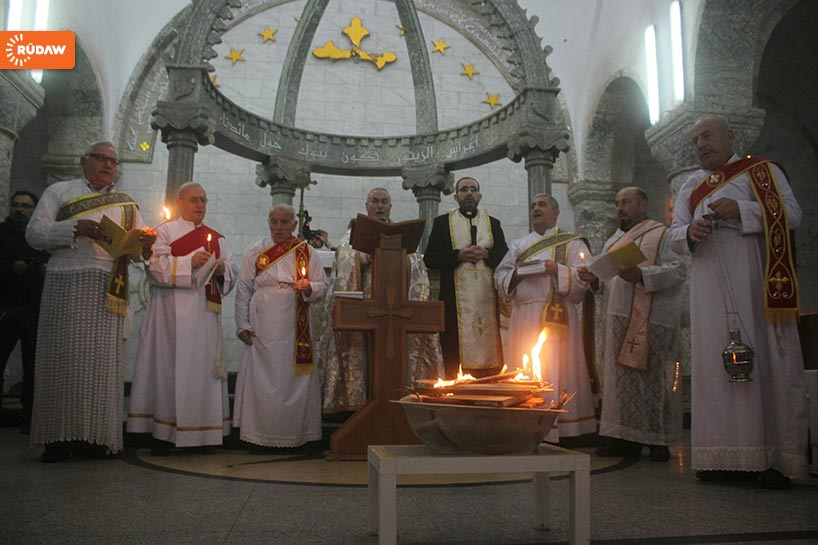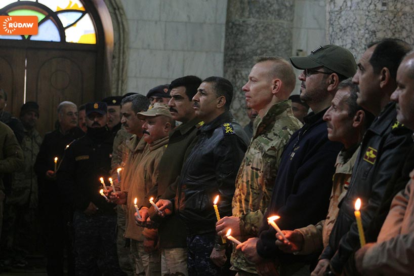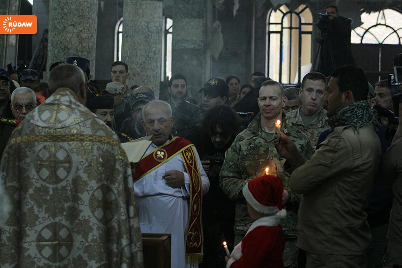 Lê îsal di nav dêrên wêrankirî de merasîmên pîrozbahiyê hatine sazkirin. Bi tevê hemwelatiyên xrîstiyan, fermandarên bilind ên operasyona Mûsilê jî beşdarê rêwresmê bûn.