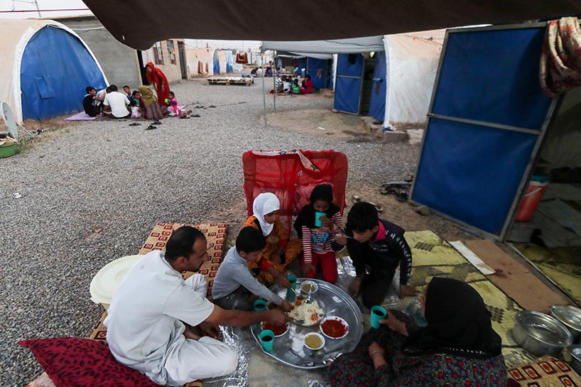 Penaberên iraqî ên ji ber şerê di navbera Artêşa Iraqê û DAIŞê de koçî Kampa Xazir kirine, yekem fitara xwe vekir