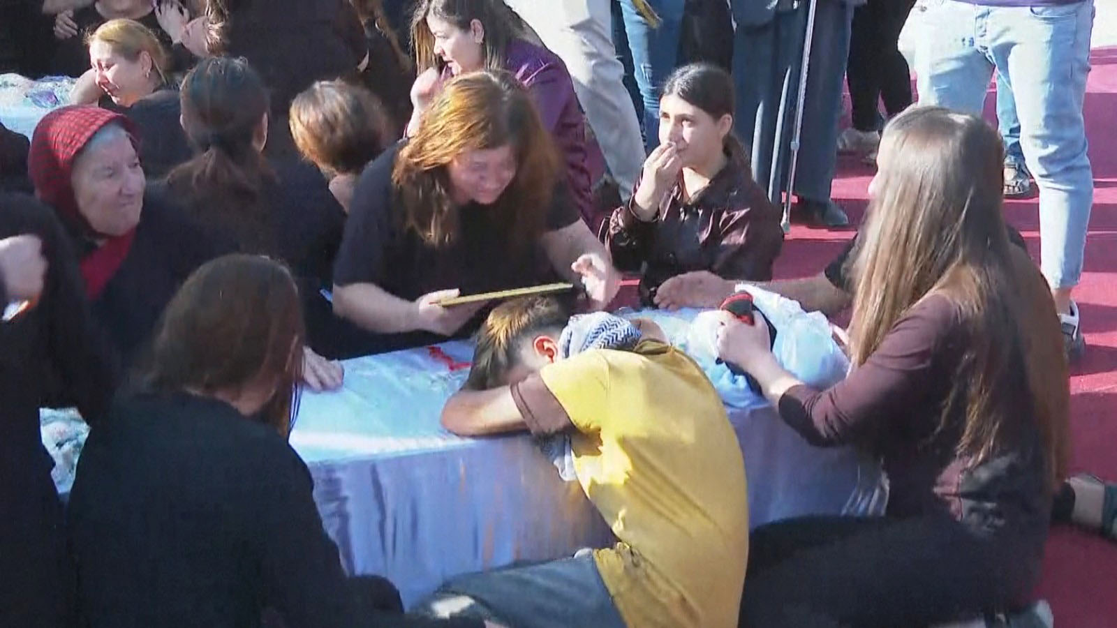 Di wêneyan de tê dîtin ku bavê Maryayê cenazeyê keça xwe hildigire.