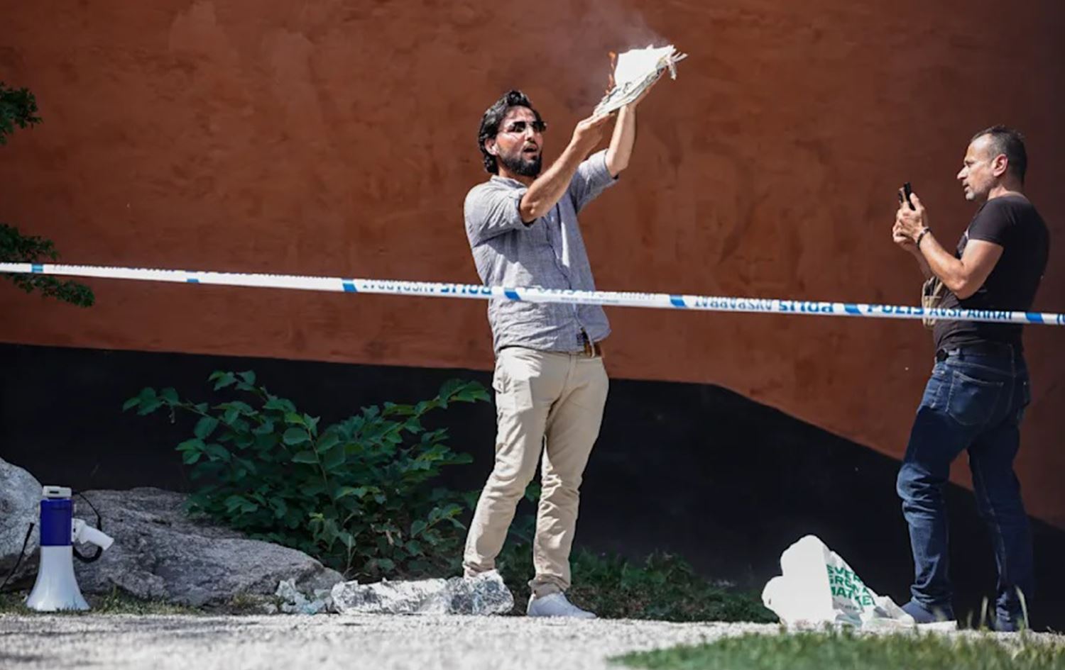Ciwanê Iraqî-Swêdî, Selwan Momîka li Stockholmê pirtûka pîroz a Misilmanan, Quranê dişewitîne. Wêne: TT News Agency