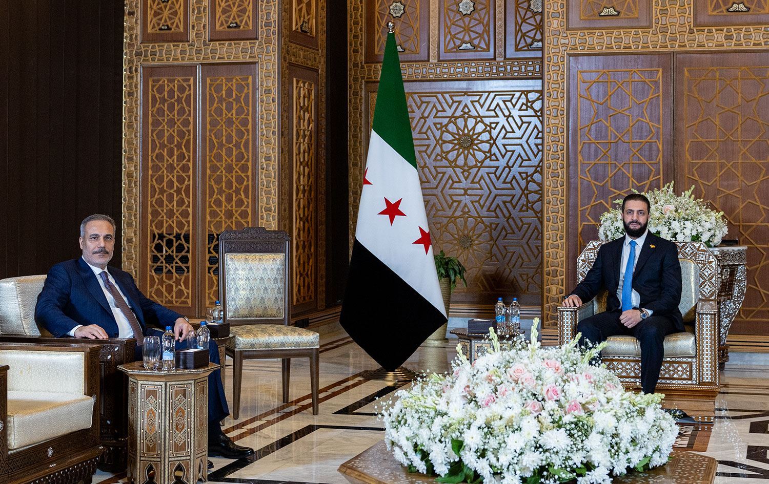 Hakan Fîdan di çarçoveya serdana xwe ya fermî de, li gel Serokkomarê Sûriyeyê Ehmed Şer civiya.