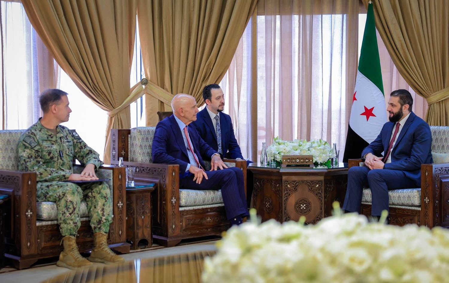 Hewlêr (Rûdaw) - Serokkomarê Sûriyeyê Ehmed Şer li Şamê Nûnerê Taybet ê Amerîkayê yê Kar û Barên Sûriyeyê Tom Barrack û Fermandarê Fermandariya Navendî ya Amerîkayê (CENTCOM) Brad Cooper civiya.