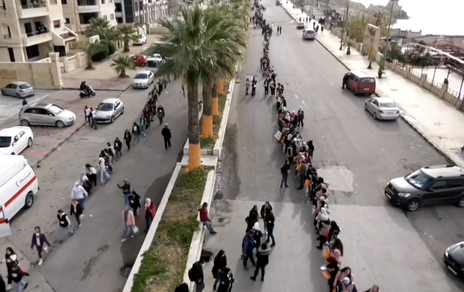 Xwepêşandana xelkê ya bi navê “Tu Ne Bi Tenê Yî” li bajarê Laziqiyeyê ji bo peyamekê bigihînin ku civak ne bi tundûtûjiya li dijî jinan e demjimêrekê berdewam kir.